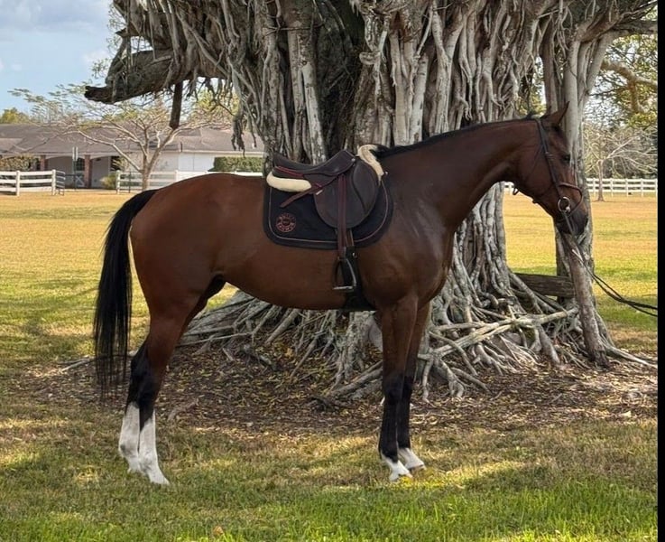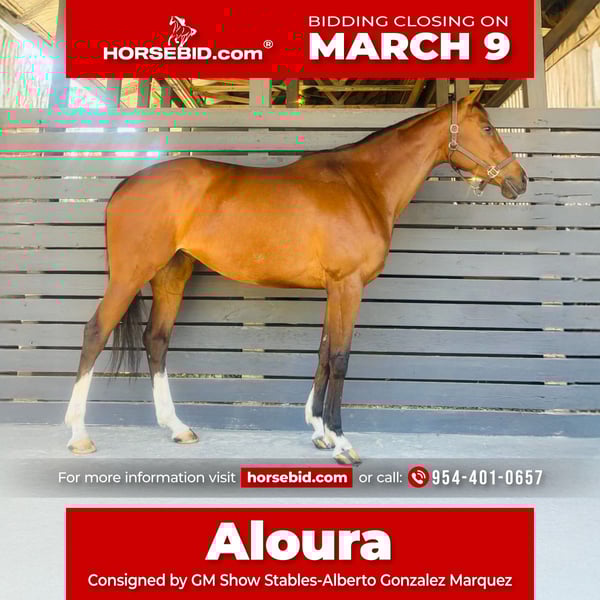 ℳ𝒶𝓇𝒸𝒽 ♦️𝐑𝐈𝐃𝐄𝐑'𝐒 𝐂𝐇𝐎𝐈𝐂𝐄♦️ Happening now thru MONDAY | MARCH 9th - Available EXCLUSIVELY on HorseBid's website! For more details and to register visit: www.Horsebid.com CONSIGNOR CONTACT: AGM Show Stables-Alberto Gonzalez Marquez (954)401-0657 LOCATION: Southwest Ranches, FL BREED: Thoroughbred REGISTERED: Yes REGISTERED NAME: Wicked Thong COLOR: Bay HEIGHT: 16.2 AGE: 8 GENDER: Mare Aloura has shown locally in schooling circuits and thrives in a consistent program with trainer. Confident and comfortable at .85m. She goes up to 1.10m at home and continues to develop with scope and enthusiasm. She is honest and willing for the right rider. Offered for sale only because her partner has moved up to a much larger mount. This decision was not made lightly. Aloura is a “heart horse” looking for her next person to grow with. Well cared for in every sense. Excellent nutrition and supplements ✅ Fresh feet ✅ Up-to-date coggins and vaccines Handled and maintained with pride and intention. No known vices but not for timid riders. This is an ideal match for someone looking for an intermediate experience with room to continue moving up.