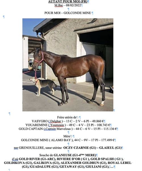 3-jähriger Wallach - AUTANT POUR MOI - Brave und freundlich - Nach 10 Monaten Training - Für weitere Informationen: 00 32 478 860 918 oder mattelin.philippe@bbox.fr