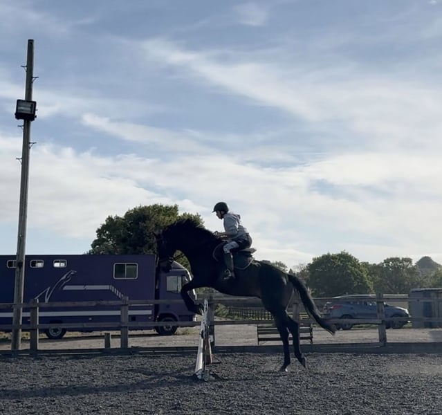 Sad sale of a lovely natured 10 year old 16.2hh Irish thoroughbred (Brice). Bought as an OTTB at 6 years, never raced. Well schooled and has good manners. Can hack out alone or in company. Solid into a jump and has never refused with me. Easy to school, not a typical TB and needs a good amount of leg to “get going” however once warmed up he is forward and willing. Has good brakes, is not strong at all. Lovely natured horse and is a gentleman in the field with other horses (currently in a field with older retired geldings) Has the ability to reach an intermediate discipline level in the right home. Has never been sick or sorry. Easy to box, clip, catch, shoe. Up to date with vaccinations and dentistry. Sale due to no fault of his own. Made to measure Bates saddle included with price.