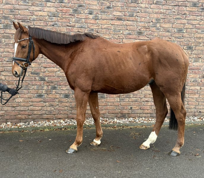 Krümel geht sicher in allen 3 GGA in Halle, Platz und Gelände. Zur Zeit ist er im Schulbetrieb eingesetzt. Er ist nur vorne beschlagen und verträglich mit anderen Pferden. Er kennt Boxen- sowie Offenstallhaltung und ist brav im Umgang.