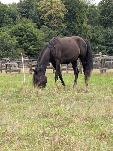 Ich bin drauf hingewiesen worden, dass es den Quarab als Rasse hier gibt. Deswegen nun in der richtigen Kategorie. Zum Verkauf steht ein wunderschöner Rappe Quarab Wallach, geboren im Jahr 2022 und aktuell 3,5 Jahre. Er hat ein Stockmaß von 155 cm. Er ist ideal für Personen, welche ein Pferd zum selber ausbilden suchen und nun starten wollen. Er geht ohne Probleme auf den Hänger, Schmied ist auch kein Problem. Angeritten ist er nicht, aber kennt Sattel Gewicht. Er ist ein verspielter und super kuscheliger Kerl. Manchmal etwas ängstlich, aber keiner der durchgeht. Man darf trotzdem nicht vergessen, dass er immernoch ein Jungpferd ist und er gerade erst am Anfang seiner Ausbildung. Aktuell steht er im Offenstall und das sollte auch so bleiben aufgrund seines Temperamentes. Es ist kein Notverkauf und ich würde mir den Platz vorher anschauen. Der Wallach ist gesund und frei von bekannten Krankheiten. Er freut sich auf eine neue Familie, die ihn artgerecht fördert und liebt. Es liegt mir am Herzen, dass er ein gutes Zuhause für immer findet. Bitte nur Anschreiben wenn wirklich Interesse besteht und einem die Kosten eines Pferdes bewusst sind. Bei Interesse oder weiteren Fragen stehe ich gerne zur Verfügung.