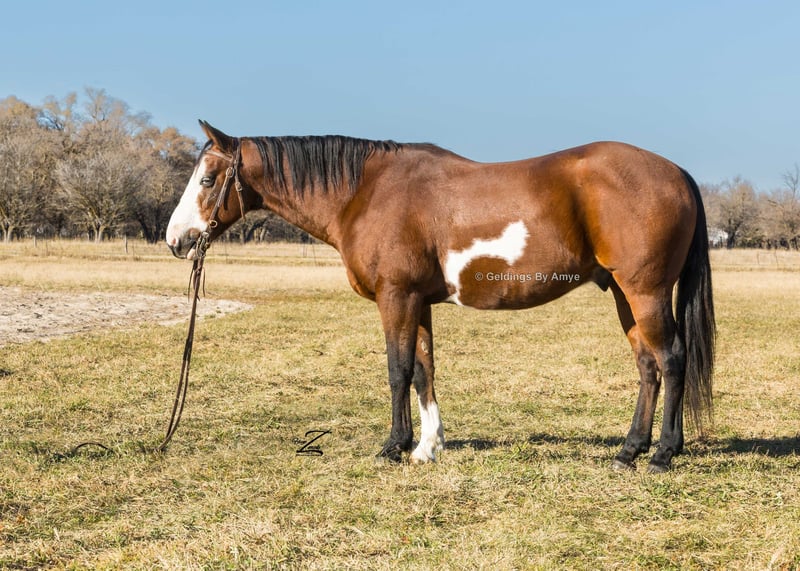 ⚜️ 𝓽𝓱𝓮 𝐇𝐨𝐫𝐬𝐞𝐦𝐚𝐧'𝐬 𝓢𝓱𝓸𝔀𝓬𝓪𝓼𝓮⚜️ Happening now thru MONDAY | DECEMBER 1st - Available EXCLUSIVELY on HorseBid's website! For more details and to register visit: www.Horsebid.com CONSIGNOR CONTACT: Geldings by Amye 308-380-2244 LOCATION: Grand Island, NE BREED: Tobiano Quarter Pony REGISTERED: No REGISTERED NAME: Rubble COLOR: Bay Tobiano HEIGHT: 13.3 AGE: 10 GENDER: Gelding Rubble, Rubble, on the Double! If you have small grand kids, this will make perfect sense to you! My grandson dubbed this mighty little horse “Rubble” after the endearing, brown and white pup of the same name on the Paw Patrol movie. Rubble the pony is short, stout and very fun to ride. He stands 13.3 hands with thick boned, correct legs and good hard hooves. He has a go forth and conquer disposition when being ridden in rugged terrain and makes an excellent lead horse. Rubble is just as content to ease along in the middle of the trail ride group if you wish to socialize. Or if you prefer the solitude of bringing up the rear, Rubble has no need to keep up with the herd unless you ask him to . Rubble is more comfortable on the trail than in the arena, but if circles make you happy, he will try his best. Random trail obstacles like bridges, logs, flags, roping the dummy, blue tarps and other such silliness do not faze him a bit. Rubble is ten years old. Just old enough to have been there and done that – but still young enough to explore beautiful country with his person for years to come. He would be the perfect choice for a small woman or intermediate youth rider. He is easy to lead, load and tie and is good for the farrier. Right now, Rubble has shoes on because he has been trail riding in rugged, rocky country in the past few weeks. His splashy white face and tall front stocking make him eye-catching in any crowd. He is a handsome boy and a really fun horse to ride. If he speaks to your heart, please call me! I would love to visit with you about him further. My number is 308-380-2244. Better yet, if you are able to, come and meet him and ride him for yourself!