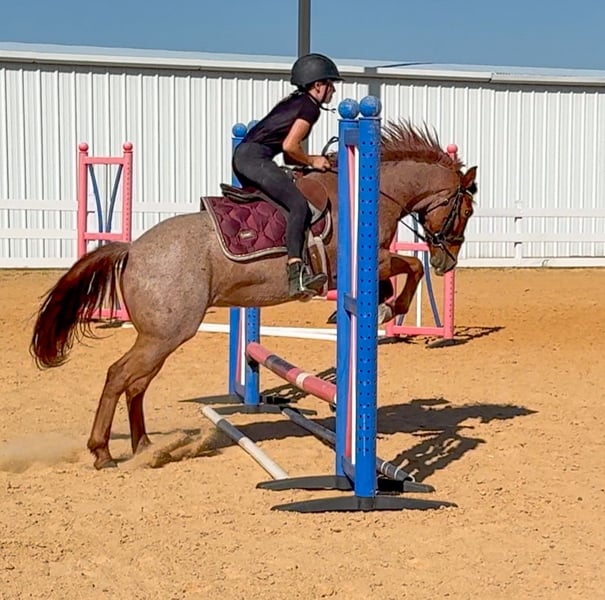 🎁 𝐈𝐍 𝐓𝐈𝐌𝐄 𝐅𝐎𝐑 𝑪𝒉𝒓𝒊𝒔𝒕𝒎𝒂𝒔 🎁 Happening now thru TUESDAY | DECEMBER 9th - Available EXCLUSIVELY on Ponybid's website! For more details and to register visit: www.Ponybid.com CONSIGNOR CONTACT: JP Performance Horses 817-901-6596 LOCATION: Weatherford, TX BREED: Quarter Pony REGISTERED: No COLOR: Red Roan HEIGHT: 13.1 AGE: 11 GENDER: Gelding ✨ UNICORN ALERT ✨ Ranger is the true definition of a unicorn. This little horse has a heart the size of Texas and the sweetest, most honest personality you’ll ever find. He tries his absolute best every single time, no matter what you ask of him. Over the past year, Ranger has been everywhere and done everything — and he does it all with ease. Youth rodeos, playdays, ropings, trail rides, endurance races (where he won 1st place in the youth division!), jumping, mounted shooting, parades, shown in ranch trail, kids camps, leadline, bareback in just a halter, splashing through rivers, lakes, tanks… you name it, Ranger has done it. There’s no spook, no silliness — just a solid, willing partner every ride. Ranger stands 13.1 hands tall and is 11 years old. There isn’t anything this Quarter Pony can’t do, and he amazes us more and more every day. We cannot wait to see him under some lucky kid’s Christmas tree — he is truly that once-in-a-lifetime pony kids dream of. He’s fully up to date on vaccinations, coggins, recent teeth floating, routine deworming, and he has perfect feet with no maintenance required. Ranger is the kind of pony who will teach a kid how to be a horseman. He loads and unloads easily, does great in the herd, you can catch him anywhere, and he ties quietly at the trailer like a gentleman. From the littlest riders to the big kids, everyone can enjoy him. He’ll go as slow or as fast as they ask, stops beautifully, turns effortlessly, and works just as well in a short-shank hackamore, a bit, or even just a halter. If you’re looking for a safe, beautiful, talented Quarter Pony who can take your kid into any event their heart desires, Ranger is the real deal — a top-notch, all-around unicorn who excels at it all. Feel free to reach out to Jackie with JP Performance Horses at 817-901-6596 to schedule a time to come see Ranger in person, or a FaceTime video for those who are far away. We are happy to hold him til Christmas and will help with shipping arrangements. This is a very special pony and we definitely want the best for him!!