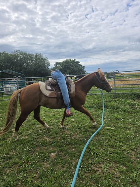 Verkaufe Quarter Pony Wallach – Perfekt fürs Western und Freizeitreiten ! Zum Verkauf steht ein wunderschöner Quarter Pony Wallach, geboren im Jahr 2022. Er ist ein kleiner Charmeur und mit seinem hübschen Gesicht und seinem einzigartigen Rabicano Fell ist er ein echter Blickfang. Er hat einen harmonischen Körperbau, gute passende Hufe. Das Pony hat ein Stockmaß von 135,5 cm und ist derzeit leicht überbaut, da noch im Wachstum Er eignet sich ideal für den Freizeitbereich, sowie für Turniere im Einsteigerbereich. Mit weiterer Ausbildung kann Fritz ein tolles Jugend- und Kinderpony werden. Ruhe und Nervenstärke hat er für sein junges Alter schon gut angelegt. Er lässt sich von meinen Kindern putzen, führen und kuscheln. Fritz ist verladefromm, steht super bei der Hufpflege, lässt sich anbinden, putzen, satteln und longieren. Auch fremde Umgebungen bereiten ihm keine Probleme. Er ist sozial, verspielt und einfach ein sympatisches Jungpferd. Er war schon mehrfach als Handpferd im Gelände, auch spazierengehen allein kennt er schon. Die ersten Schritte unter dem Reiter hat er auch schon gemacht. Preis steigt mit weiterer Ausbildung. Er ist freundlich, gut im Umgang und kennt die Grundlagen im Umgang mit Menschen. Aufgrund seines jungen Alters ist er bestens geeignet für erfahrene Reiter, die ein charmantes Pony für die Freizeit suchen. Bei Interesse oder für weitere Informationen stehe ich gerne zur Verfügung!