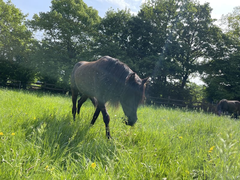 Zum Verkauf steht ein wunderschöner Rappe Quarter Pony Mix Wallach, geboren im Jahr 2022. Er hat ein Stockmaß von 155 cm. Er ist ideal für Personen, welche ein Pferd zum selber ausbilden suchen und nun starten wollen. Er geht ohne Probleme auf den Hänger, Schmied ist auch kein Problem. Angeritten ist er nicht, aber kennt Sattel Gewicht. Er ist ein verspielter und super kuscheliger Kerl. Manchmal etwas ängstlich, aber keiner der durchgeht. Man darf trotzdem nicht vergessen, dass er immernoch ein Jungpferd ist und er gerade erst am Anfang seiner Ausbildung. Aktuell steht er im Offenstall und das sollte auch so bleiben aufgrund seines Temperamentes. Es ist kein Notverkauf und ich würde mir den Platz vorher anschauen. Der Wallach ist gesund und frei von bekannten Krankheiten. Er freut sich auf eine neue Familie, die ihn artgerecht fördert und liebt. Es liegt mir am Herzen, dass er ein gutes Zuhause für immer findet. Bei Interesse oder weiteren Fragen stehe ich gerne zur Verfügung.