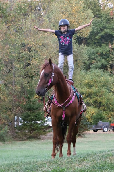 ⚜️ 𝓽𝓱𝓮 𝐇𝐨𝐫𝐬𝐞𝐦𝐚𝐧'𝐬 𝓢𝓱𝓸𝔀𝓬𝓪𝓼𝓮⚜️ Happening now thru MONDAY | DECEMBER 1st - Available EXCLUSIVELY on HorseBid's website! For more details and to register visit: www.Horsebid.com CONSIGNOR CONTACT: Blackstone Stables 248-390-6831 LOCATION: Howell, MI BREED: Quarter Pony REGISTERED: No COLOR: Chestnut HEIGHT: 14.2 AGE: 6 GENDER: Gelding If a horse could wear a halo Freedom would have one! Freedom is a 14.2hh 6 yo quarter pony gelding. He's a stunning bright chesthnut in color with great bone structure and solid conformation. Freedom as his name implies gives you that feeling your a carefree child galloping an open field every time you swing your leg over his back. He has a very cheerful but calm demeanor. Freedom walk, trot and canters with ease and stops on a dime. He comes equipped with effortless transitions both upward and down. He has been a huge asset to our program as he will gladly teach the smallest riders the ropes and will also take care of the most timid adults, while also being fun for a rider who knows a little something. Freedom loves the trails, he has been ridden thru deep woods, big open fields, and has crossed water. He has participated in all of the mounted games, and obstacle courses with the most beginner riders. Any job you ask of Freedom he will do it with patience and ease. Freedom has fantastic ground manners and will stand for anything. He has been thru our extensive desensitization program, and has passed with flying colors. He's been exposed to tarps pool noodles, inflatable costumes, bridges, flags, and busy roads. We cannot find anything to spook him. He also has a great deal of liberty training and will lay down on command. He's a horse who wants a best friend and who loves attention. He plays well outside with all others. This horse will make you want to ride and build you up every time you hop on! He would be a huge addition to a lesson program, a family type of horse or just that all around always dependable mount.