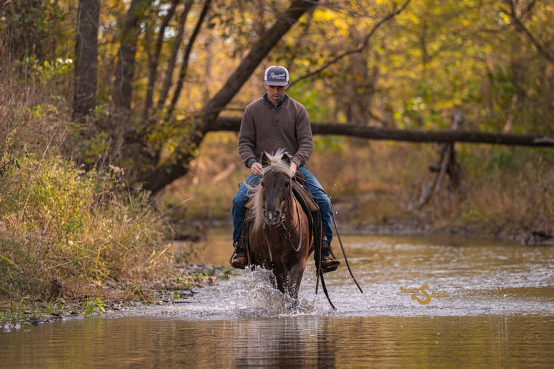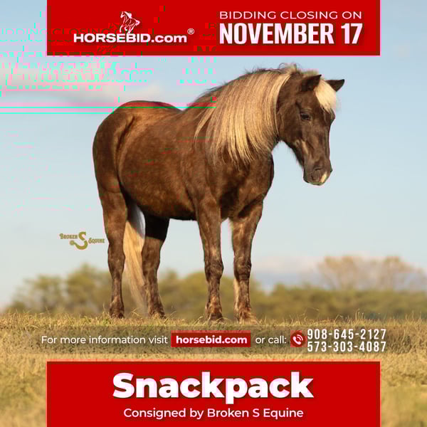 🎲𝓽𝓱𝓮 𝐑𝐈𝐃𝐄𝐑'𝐒 𝓒𝓱𝓸𝓲𝓬𝓮🎲 Happening now thru MONDAY | NOVEMBER 17th - Available EXCLUSIVELY on HorseBid's website! For more details and to register visit: www.Horsebid.com CONSIGNOR CONTACT: Broken S Equine Kieran 908-645-2127 or Beau 573-303-4087 LOCATION: Bogard, MO BREED: Quarter Pony REGISTERED: No COLOR: Chocolate Palomino HEIGHT: 13.2 AGE: 7 GENDER: Gelding 𝐎𝐧𝐞 𝐏𝐨𝐧𝐲, 𝐄𝐯𝐞𝐫𝐲 𝐀𝐝𝐯𝐞𝐧𝐭𝐮𝐫𝐞 Snackpack is a 7 year old Quarter Pony gelding standing 13.2 hands high. Looking for the pony that your kid won't outgrow in 6 months because they "Don't want to ride western anymore" and now it's "all about the jumpers"? Snackpack is an all in one, fun and useful for kids and adults alike. When you imagine the game little ponies hunting alongside the big horses in the Irish countryside, this is the pony you picture. He is the pony version of a 4-wheeler. He tackles any terrain, jumps all the jumps, and can keep up with the big dogs, all with a good head on his shoulders. He is the perfect choice for a keen kid, or smaller adult that wants to be able to do all of the things, while staying close to the ground. When I was a kid I wished and wished for a pony like this! He is the perfect gaming, playday, or gymkhana mount. Take him to the rodeo and do the games and speed events Friday night, and clean up to hunt Saturday. Snackpack is game for absolutely anything you can dream up. He would love the pony eventing job, being a hunt pony, or doing what he does here - which is a little of everything! If you (or your kid) can't decide if they want to be a cowgirl, an eventer, a trick rider, or the next pony jumper champion-- Good news! You won't need to buy 3 different ponies, Snackpack will do all the things, and look good doing it. Is Snackpack the pony for your timid kid just learning to trot or fresh off the lead line? Probably not. Though he has absolutely led our little ones around on the lead and lunge line, Snackpack is more of a "Lets do all the things" instead of a "let's walk in a circle". He is the one stop shop for the rider who thinks, "I wanna try that!" He is not for a total beginner, but he is perfect for someone who can already ride a bit, and wants to enjoy a versatile and game pony. He has three very smooth gaits, a super jump, and tons of miles outside of the ring on all terrain. He has pushed cows, camped, and gone on hunter paces. He is not speedy or hot, but he is not a dead head. He goes when asked, and slows down or stops when you ask as well - giving him the perfect amount of motor to hunt, event, or anything else you can dream up. He knows the difference between work and play, and will happily trail ride on a loose rein to relax, or pick up the pace and keep up with the big horses on hunter paces. Snackpack is a total ham, and loves his people. He is the easiest of keepers, and is happy living inside or out. ⚫️Snackpack is an easy keeper with no quirks or maintenance. We have a recent, clean vet check on file. ⚫️Our program aims to train and produce top quality horses and ponies for all disciplines and experience levels. Check out our website for testimonials! ⚫️We are located in Bogard, MO. We can help you arrange shipping anywhere! ⚫️For more information about Snakcpack, or any of our other horses call or text us. Kieran 908-645-2127 Beau 573-303-4087