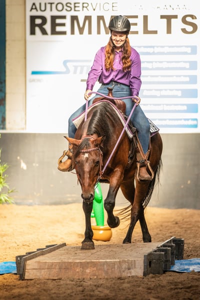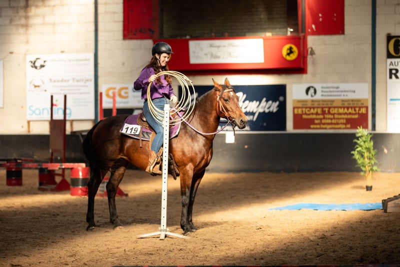 Hallo, met pijn in mijn hart verkoop ik mijn Connemara/Quarter-mix merrie. 1,51 m 12 jaar Rangmiddel – in de oude stal was ze de ondergeschikte, in de huidige stal is ze de ranghoogste. Voor sportieve recreatieve ruiters. Helaas heb ik simpelweg niet genoeg tijd voor haar. Ze heeft iemand nodig die haar regelmatig traint. Ivy is een sportief paard met veel go, dat uitgedaagd wil worden. Ze is jaren lang Engels gereden en de laatste twee jaar Western. Ze staat open voor plezier en geniet van allerlei activiteiten, vooral sportieve dingen zoals springen, speed rodeo, endurance ritten, maar ook trail, lasso en boogschieten. Aan de longeerstand beweegt ze het liefst in draf, onder het zadel in galop. Soms kan ze wat prikkelbaar zijn, maar altijd binnen een goed te reguleren maat. Ook als ze wat onrustig is, let ze altijd goed op haar ruiter. Verder is Ivy veel in het terrein gereden, ook in vreemde hallen. We hebben Westernwedstrijden gedaan en aan diverse cursussen deelgenomen. Momenteel staat ze helaas niet in training, omdat ik daar simpelweg niet aan toe kom. Dit is ook een van de hoofdredenen voor haar verkoop. Ze is geen puur kinderpony, ook al werd ze hier eens per week gereden door een 11-jarig meisje, zowel longeerend als zelfstandig. Het meisje doet ook grondwerk en longeert haar alleen. Ze heeft jaren ’s nachts in de box gestaan en overdag buiten, en nu alweer bijna twee jaar in een open stal. Ze kent hooi en kuilvoer. Verder kent ze alles rondom de manege – honden, schapen, tractoren, enzovoort. Ze is iets mugggevoelig, maar vertoont geen eczeem. Bij veel muggenlast gebruiken we een deken of de vliegenmasker, dat ze ook graag tijdens het trainen draagt. Ze is gezond en heeft tot nu toe nooit problemen gehad bij mij. Ze is smid-proof en makkelijk te laden.