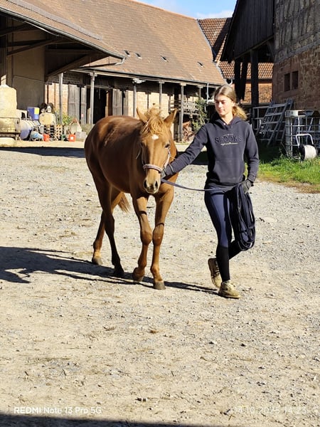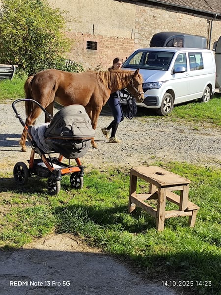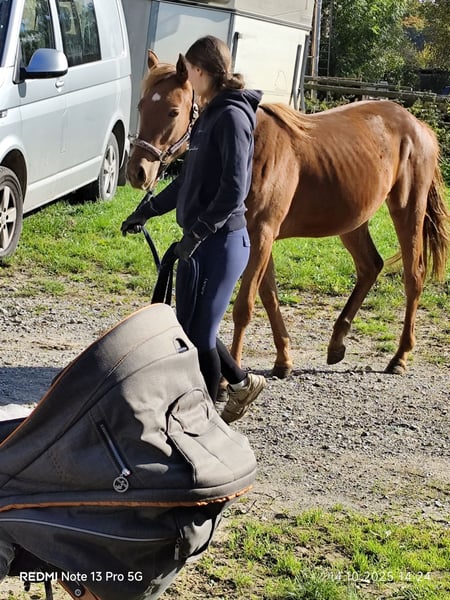Verkaufe Quartermix Pony Stute – Perfekt für die Freizeit! Zum Verkauf steht eine wunderschöne Quartermix Pony Stute, geboren im Jahr 2024. Sie ist ein charmanter Fuchs mit einem freundlichen Wesen und einem geschätztem Endstockmaß von ca. 150 cm. Das Pony eignet sich ideal für den Freizeitbereich und begeistert durch ihren ausgeglichenen Charakter sowie ihre Lernbereitschaft. Sie ist gesund, gepflegt und kennt den Umgang mit Menschen. Ob für die zukünftlichen täglichen Ausritte, kleine Turniere oder einfach zum Kuscheln – diese Quarter Pony Stute ist eine tolle Begleiterin für jeden Freizeitpferdeliebhaber. Bei Interesse oder für weitere Informationen stehe ich gerne zur Verfügung. Besichtigung nach telefonischer Vereinbarung möglich.