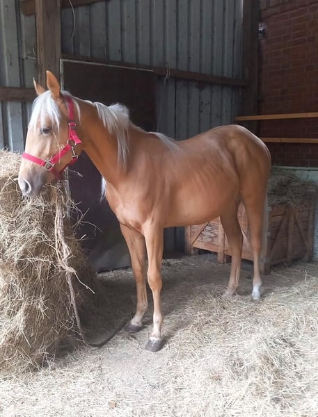 Babypferd – Quarterhorse Stute, geboren 2024 Zum Verkauf steht eine junge, reinrassige Quarterhorse Stute, geboren im Jahr 2024. Die Stute ist noch roh und konnte bisher keine Ausbildung genießen – somit bietet sie die perfekte Grundlage für eine individuelle Förderung und Ausbildung nach eigenen Vorstellungen. Es handelt sich um ein liebes, dem Alter entsprechend neugieriges Jungtier mit viel Entwicklungspotenzial. Durch ihre ruhige Art eignet sie sich ideal für erfahrene Pferdemenschen, die Freude daran haben, ein Pferd von Grund auf aufzubauen. Details: • Rasse: Quarterhorse (reinrassig, ohne Papiere) • Geschlecht: Stute • Geburtsjahr: 2024 • Stockmaß: ca. 1,50 m – 1,55 m (geschätzt im Endmaß) • Ausbildungsstand: roh • Abstammung: nicht bekannt / ohne eingetragene Papiere • Besonderheit: Nabelbruch vorhanden Der Nabelbruch beeinträchtigt die Stute aktuell nicht im Alltag, sollte jedoch bei weiterer Planung berücksichtigt werden. Die Stute wächst artgerecht auf und kennt den Umgang mit Menschen. Weitere Informationen gerne auf Anfrage. Bei ernsthaftem Interesse freuen wir uns über eine Nachricht.
