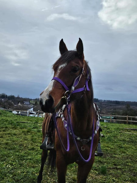 Jument Quarter « Simply Revolution » – Partenaire de loisirs avec cœur Âge : 6,5 ans Taille : environ 1,52 m Catégorie de prix : 6 500 € AKU : disponible ✨ Description : Cette jument Quarter de 6 ans séduit par son tempérament amical et sa nature détendue. « Simply Revolution » est parfaitement docile en main, très proche de l’homme et se montre fiable et volontaire sous la selle. Elle connaît aussi bien le travail en manège que les sorties tranquilles – en solo ou en groupe. 🐎 Idéal pour les cavaliers qui : recherchent une jument simple, jeune, fiable en tant que partenaire de loisirs et prête à progresser. Un joli cheval western de loisir, qui procure du plaisir ! 🩺 Nos chevaux sont régulièrement : – vermifugés – soignés par le maréchal-ferrant – contrôlés osteopathiquement 🛍 Boutique : Selle western, briderie & accessoires 🚛 Transport et équipement organisés à prix avantageux selon vos souhaits Notre service : ✅ 3 mois de droit d’échange ✅ Essai : 35 €, chaque cheval supplémentaire 25 € (facturés le jour même en cas d’achat) ✅ 100 € de remise immédiate pour retrait ou transport le jour même ✅ Conseils honnêtes et personnalisés 📞 Pour toute demande, merci de privilégier le téléphone : 0171 – 4001968 🕗 Disponible tous les jours de 8h à 20h ⚠️ Pas de mails ni WhatsApp ⚠️ Toutes les informations sont données à titre indicatif, sans garantie