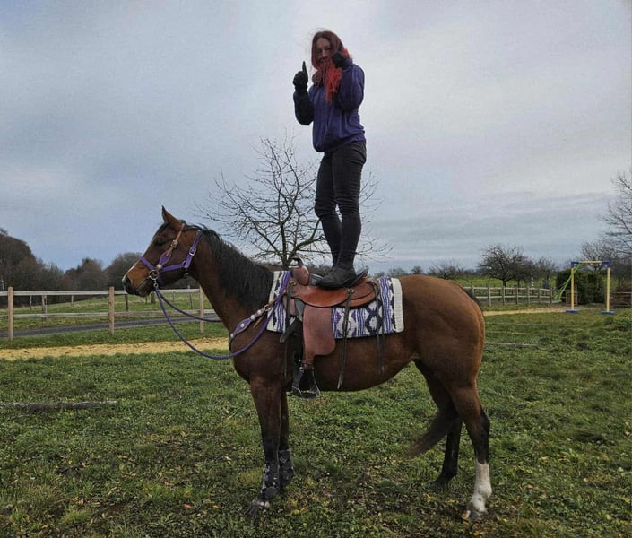 Quartermerrie „Simply Revolution“ – Vrijetijdsmaat met een hart Leeftijd: 6,5 jaar Stockmaat: ca. 1,52 m Prijsklasse: € 6.500 AKU: aanwezig ✨ Beschrijving: Deze 6,5-jarige quartermerrie betovert met haar vriendelijke aard en ontspannen karakter. „Simply Revolution“ is in omgang absoluut braaf, zeer mensgericht en onder het zadel betrouwbaar en leergierig. Ze kent zowel het werk op de piste als ontspannen buitenritten – solo of in een groep. 🐎 Ideaal voor ruiters die: een onbezorgde, jonge merrie zoeken die als betrouwbare vrijetijdspartner overtuigt en verder ontwikkeld kan worden. Een gezellig western vrijetijdspaard dat plezier geeft! 🩺 Onze paarden worden regelmatig: – ontwormd – door de hoefsmid verzorgd – osteopathisch gecontroleerd 🛍 Boerderijwinkel: Westernzadels, bit en accessoires 🚛 Transport en uitrusting naar wens goedkoop te regelen Onze service: ✅ 3 maanden ruilgarantie ✅ Proefrit: € 35, elk extra paard € 25 (bij aankoop op dezelfde dag verrekend) ✅ € 100 directe korting bij ophalen/transport op dezelfde dag ✅ Eerlijke en persoonlijke advies 📞 Voor vragen uitsluitend telefonisch: 0171 – 4001968 🕗 Bereikbaar dagelijks van 8.00 tot 20.00 uur ⚠️ Geen e-mail of WhatsApp ⚠️ Alle gegevens onder voorbehoud