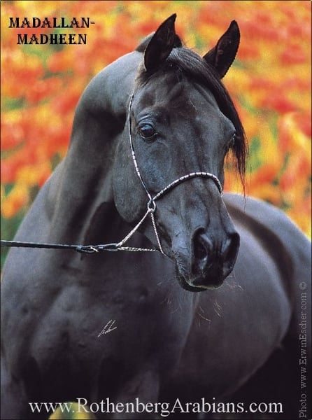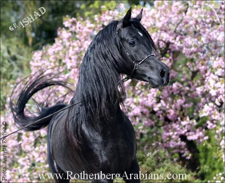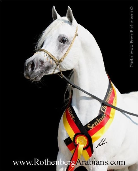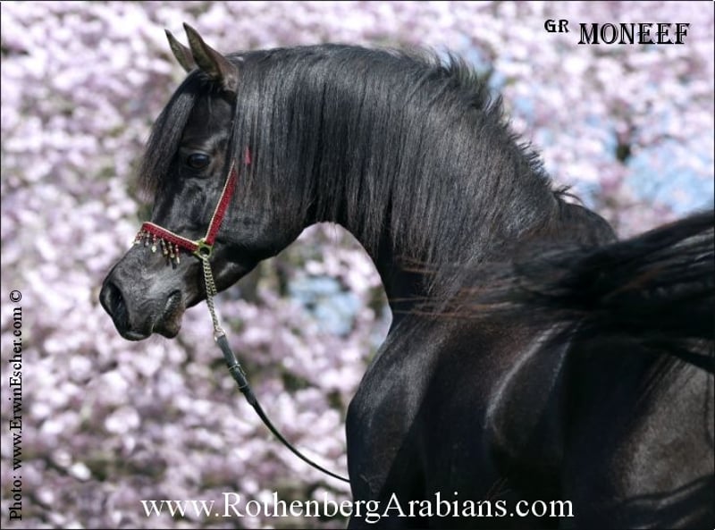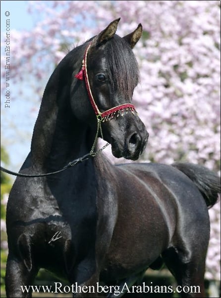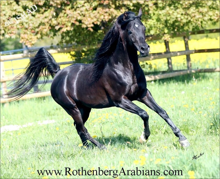 Homozygous black Straight Egyptian stallion without any white markings by black show-winner GR Faleeh (exp. Kuwait, by world-famous black gold premium stallion Madallan-Madheen)! Exotic classic in type, fantastic body, gorgeous and super showy movements and most important a just wonderful character! Offspring with breeders on 5 continents! From time to time shipped semen in best quality available, life-foal-guarantee (if not pregnant breeding for free the following year, change of stallion mostly possible upon request) From time to time shipped semen in best quality available, life-foal-guarantee (if not pregnant breeding for free the following year, change of stallion mostly possible upon request) 13 additional Straight Egyptian stallions - most of them black, several homozygous! Some of them standing outside for breeding, some have shipped fresh / frozen semen avaialble! World-famous stallions, several gold-premium stallions and/or winner of stallion-licensing / some big show-success / some with winning offspring worldwide! Black & grey, some homozygous! Are stallions are SCID & CA free, Breeding-fees from Euro 700,- up (depends the stallion and pedigree of the mare) - detailed breeding-conditions on request! Always offspring and breeding-stock available for purchase! Please visit us at Instagram: RothenbergArabianStud