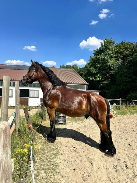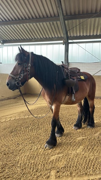 With a heavy heart, we are parting with our cold-blooded gelding. Inflation and geopolitical tensions have also affected us, and now we must make the difficult decision to say goodbye to a good long-time friend. We have had him for about 9 years. Height: 1.75 m Weight: 780 kg Age: 13 years Joris is absolutely uncomplicated with the farrier and during loading. He has a basic training in English dressage and Western riding and is often worked on the ground and in the terrain. He is a very sweet horse, who occasionally shows his stubborn side. In the herd, he is more towards the bottom and prefers to avoid stress. He enjoys working and likes to be challenged. He is a reliable horse, as described in the books. He actually has very good hooves and has always been barefoot. However, he recently had a hoof abscess that needed to be cut out quite high, and is now shod in front; otherwise, he is quite robust and does not suffer from colds. Due to a diagnosis (bone cyst, 11.04.22), he is rideable but has some weaker days when he limps a bit. One must pay a little attention to his condition, and in return, you will have a diligent, clever, and good friend. The diagnosis is, of course, available for viewing. We can well imagine him as a trail horse for leisurely rides as well as a part-time arena pilot. He is sold with saddle, bridle, and Western pad. Location is Duisburg Baerl. Placement is only to the best hands! For any questions, I am of course happy to help, even though it is not easy for me.