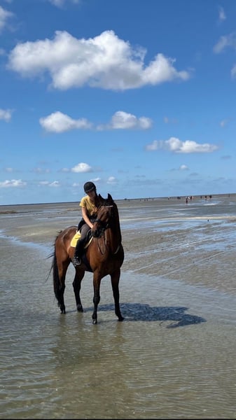 Hallo, leuk dat u ons hebt gevonden. Neem gerust contact met ons op bij interesse om een kennismaking te plannen en mogelijk uw droompaard te vinden. Met pijn in het hart moet ik, door persoonlijke omstandigheden, afscheid nemen van mijn geliefde, in april 2011 geboren, ruin en vierbenig maatje met een indrukwekkende stokmaat van 1,87 m (toch heel zachtaardig en attent), die mijn familie en mij in alle levenssituaties heeft bijgestaan. ⚠️ In plaats van verkoop, zou ik me eventueel ook kunnen voorstellen om hem beschikbaar te stellen aan een ambitieuze REINEN dressuurruiter. Hij staat momenteel in Cuxhaven (27476) – graag in een stal, maar een verhuizing binnen Duitsland is ook mogelijk bij een geschikt nieuw thuis. ⚠️ Hij was tot ongeveer 2,5 jaar geleden actief in de hogere wedstrijdsport en behaalde daar goede resultaten onder een amazone in de klasse S, evenals in het M*-springen tot 2,20 m. De wedstrijdpauze is ontstaan door mijn gezondheidsproblemen, maar hij is tijdens die periode uiteraard wel verder getraind en ontwikkeld. In omgang en onder het zadel vertoont hij geen ongewenst gedrag, is volledig gezond (regelmatig gecontroleerd door de dierenarts) en heeft tot nu toe geen grote verwondingen of ziekten gehad. In het parcours en in het terrein wil hij altijd samen met zijn ruiter de hindernis overwinnen en springt hij indien nodig zelfstandig passend. Ik heb hem nog nooit een weigering zien maken, en ook zijn fokker, trainer en ruiters hebben dat nog nooit meegemaakt. Hij is in het terrein zeer rustig te rijden en brengt veel plezier in de dagelijkse training. We hebben al mooie buitenritten gemaakt, soms met overnachting, door de heide en het Wernerwald tot aan Neuwerk (ongeveer 20 km per route vanaf de stal) en weer terug. Hij staat altijd open voor nieuwe dingen en doet zijn best om zijn mens tevreden te stellen. In de dressuur trainen we sinds kort actief, maar we beheersen inmiddels al vrij betrouwbaar L*-proeven en kunnen ook speels enkele S*-lessen uitvoeren. Hij beschikt over krachtige bewegingen en veel beenactie, met een goede schwung. Door zijn hoge opleidingsniveau is hij geen beginnerstalent en heeft hij een ervaren ruiter nodig om hem te kunnen rijden. Toch is hij ook goed te rijden door beginners en amazones, omdat hij altijd op zijn ruiter let en zich graag als leraar opstelt. Bij verdere vragen of interesse in een kennismaking, horen we graag van u. Ik verzoek u vriendelijk om niet te vragen naar de "laatste prijs" of vergelijkbare berichten. Hij is mijn absolute hartpaard, en het schrijven van deze woorden is voor mij erg moeilijk. Hij gaat alleen weg als alles 100% klopt voor mijn grote vriend. Bij concrete interesse kunnen wij ook meer foto's, video's en inzage in alle beschikbare documenten (paspoort, röntgenfoto’s, bloedwaarden, enz.) verstrekken. Met vriendelijke groet, Eileen, Iven & L.C. P.S. Omdat er vaak misverstanden ontstaan, wil ik nogmaals benadrukken dat hij vanwege zijn grootte GEEN gewichtsträger is en ook niet bedoeld is te worden. Dit is een particuliere verkoop onder uitsluiting van de wettelijke garantie. De verkoop gebeurt zoals bezichtigd en onder uitsluiting van enige aansprakelijkheid voor zichtbare en onzichtbare gebreken. De genoemde eigenschappen zijn indrukken van de verkoper uit zijn werkgebied en vormen geen rechtsgeldige garantie, maar zijn naar beste weten en inzicht beschreven.
