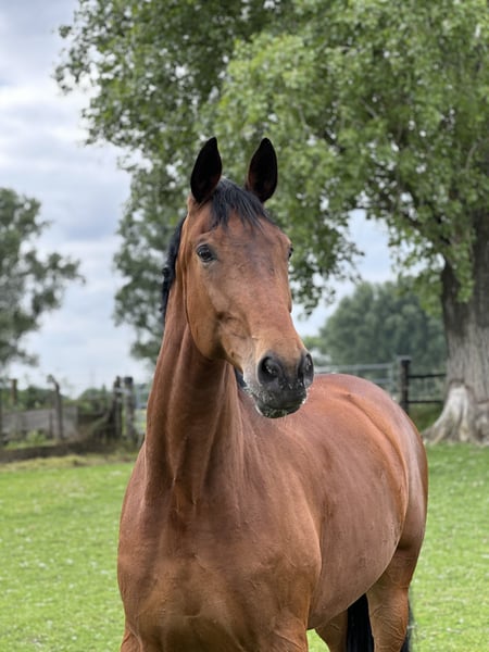 Te koop staat dit merrie, geboren in 2013. Ze valt op door haar heldere hoofd, zeer comfortabele basisgangen en uitstekende rijbaarheid. Ondanks haar grootte van ongeveer 1,80 m is ze heel fijn te rijden en reageert ze gevoelig op alle hulpen, waardoor ze ook geschikt is voor kleinere of minder ervaren ruiters. In de omgang is ze eerder een rustige type en onder het zadel heeft ze een aangename go, omdat ze hier graag en enthousiast meewerkt. Daarnaast gaat ze heel graag het buitengebied in, waar ze zich altijd goed hanteerbaar en onbevreesd toont. In het voorjaar van 2024 had ze een blessure, die volledig genezen is en daarna voorzichtig is opgebouwd. Sindsdien bevindt ze zich weer op haar normale, belastbare trainingsniveau. Natuurlijk is ze regelmatig gevaccineerd, ontwormd en voorgesteld aan de hoefsmid. Daarnaast worden er regelmatig check-ups gedaan bij de fysiotherapeut en de tandarts. Meer informatie, foto’s en video op aanvraag.