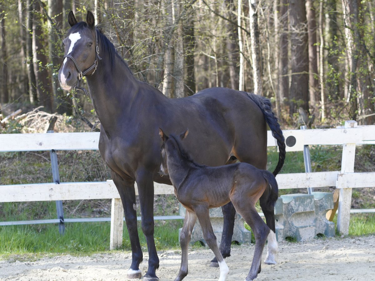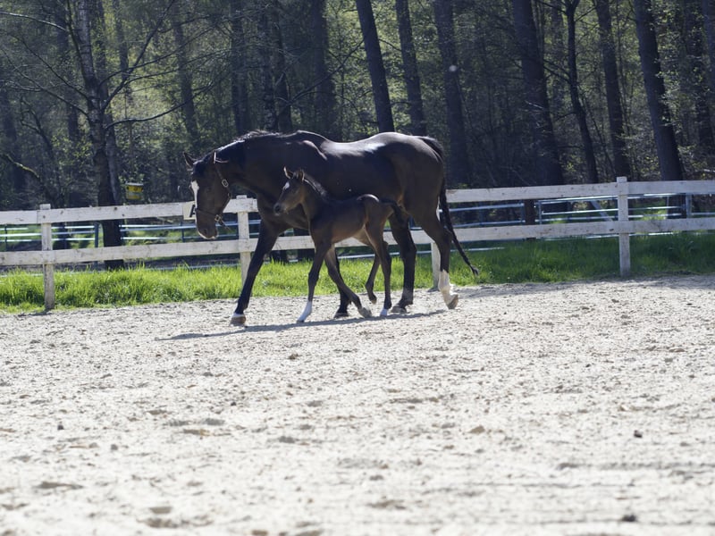 Zum Verkauf steht eine 2012 geborene Rheinländer Stute, die durch ihre sportliche Eleganz, ihr ausgeglichenes Wesen und ihre hochwertige Springabstammung begeistert. Die dunkelbraune, schicke Stute wurde in ihrer aktiven Zeit im Springsport bis Klasse L & M vorgestellt. In den letzten Jahren wurde sie nicht geritten. 2025 brachte sie ein gesundes Fohlen zur Welt und bewies dabei ihre Qualitäten als fürsorgliche, unkomplizierte Mutter. Abstammung mit sportlicher Perspektive Eine bewährte, leistungsorientierte Springabstammung, die für moderne Sportpferde, Vermögen und Einsatzbereitschaft steht – eine ideale Basis für eine zukunftsorientierte Zucht. Diese Stute ist ein echter Schatz im täglichen Umgang: • absolut unkompliziert, brav und verlässlich • angenehm im Stall und im Handling • herdenverträglich, sozial und ausgeglichen • menschenbezogen, ruhig und klar im Kopf Eine Stute, die man gern um sich hat und die auch im Zuchtalltag durch ihre Gelassenheit und Zuverlässigkeit überzeugt. Eine wertvolle Rheinländer Zuchtstute mit sportlicher Vergangenheit, hervorragender Springabstammung und einem Charakter, der Vertrauen schafft. Ideal für Züchter, die Wert auf Gesundheit, Rittigkeit, gute Nerven und Qualität legen. Weitere Informationen gern auf Anfrage