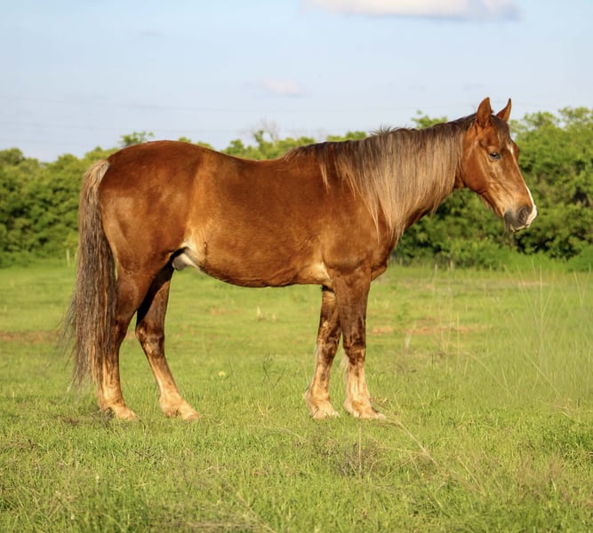 "AVAILABLE ON ONLINE HORSE AUCTION AT www DOT PlatinumEquineAuction DOT com BIDDING OPEN NOW thru SUNDAY | MAY 10TH! *Final price will be determined on auction site* CONSIGNOR CONTACT INFO: MW Horses 254-434-8650 LOCATION: Poolville, TX Here is the perfect smooth ride for your next trail ride, Meet our beautiful chocolate Palamino gelding standing around 14.3 hands. Coco is a 14 year old Rocky Mountain gaited horse. He is the perfect trail companion for someone that knows how to saddle up and hold the reins. He is the barn favorite. Coco can ride on a loose rein, and he will step up and ride if you ask him to. He is super smooth-gaited with a nice canter, and has been trail ridden throughout the mountains and the different terrain. Coco will handle any steep slopes, cross water, logs, big rocks, or anything you decide to cross. Even through mud and ditches. Coco will ride in the front, back, middle, alone, in big groups, or in small groups. He is that unicorn that everyone is looking for. He is easy to ride, and anyone will love him. Coco is easy to bathe, tack-up, load, shoe, or handle in any way. Coco has been exposed to all kinds of wildlife, including deer, turkeys, and animals like cows and dogs. He has been ridden on busy highways and is traffic safe. Coco has a great demeanor about whatever he is asked to do. He will catch you in the pasture and loves to be groomed. Coco will ground tie and has been taken on over night trail rides. Coco is the same horse everytime with time off! Has no buck or kick. Come see Coco for yourself or we can schedule a FaceTime to meet him! Call or text Makayla with MW Horses at 254-434-8650. Need hauling? We got a list of reliable haulers around the US!