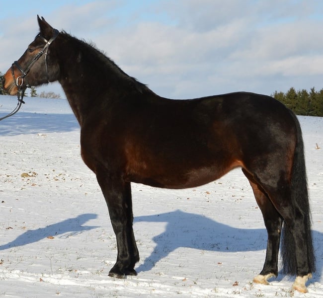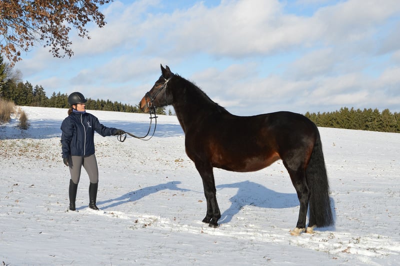 Per motivi di salute, a causa della cessazione dell'allevamento equino, vendiamo la nostra cavalla mare Rike, di 9 anni, di razza Rottaler. A tre anni ha ricevuto una formazione di base nel tiro, successivamente è stata montata presso il centro di addestramento di Riem. Da allora viene usata come cavalla da tempo libero, ed è sicura in strada e nel traffico, nonché abituata a calzature e al carico sui trailer. Da un primo accoppiamento con il cavallo stallone Warmblood pesante Eichsfelder, è nato il puledro Enrico, che è stato eletto miglior puledro della mostra di razza Rottaler 2023 e recentemente è stato approvato come stallone da monta. Rike è attualmente nuovamente in cinta con lo stallone Loriot di Graditzer (Warmblood pesante sassone, autorizzato per la conservazione della razza Rottaler) e aspetta il suo secondo puledro a fine marzo. Sotto la guida di un cavaliere esperto, si mostra desiderosa di muoversi e lavorare, sia in campagna che in maneggio. La cavalla è in buona salute e senza alcuna limitazione.
