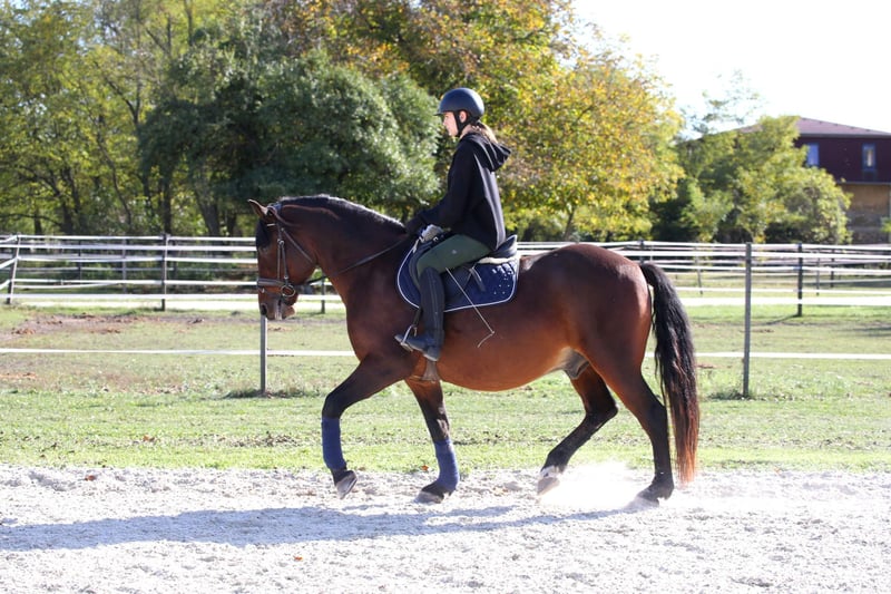 Leonardo is a 9-year-old, 16.1 hh gelding. He is a cuddly horse with a very gentle and friendly character. The gelding is perfect for hacking; in the arena, he is always attentive, and he is friendly and reliable in handling. He has no vices, and he is not bucking or rearing. He stands calmly for grooming, leading, and farrier work, and loading or traveling is no problem. He is always manageable even for children. He is also very well-behaved in the field, willing to participate in everything, and motivated. Leo is compatible with all other horses.