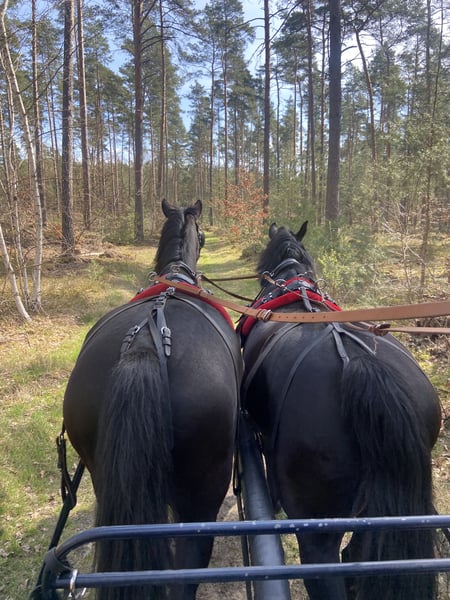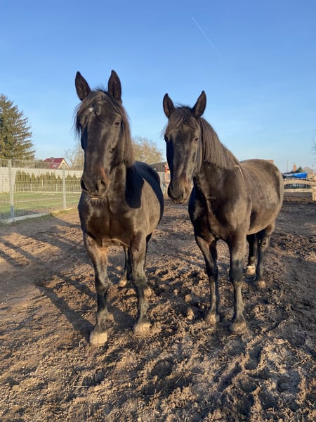 Beautiful Nonius geldings with striking appearance. Versatile all-rounders. They have full papers and pedigree documentation. Both are lightly driven and used for leisure riding. They are 10 and 11 years old. Heights are 16.1 hh and 16.0 hh. They live with us in a herd, kept in an open stable 24/7, with hay and pasture turnout. Both are barefoot. We have used them for leisure riding in town, across the countryside, and on the riding arena. Not suitable for beginners. They are sold only together. Feel free to contact us with any questions.