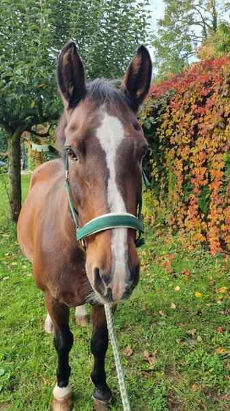 Schöner Platz für 20-jährigen Wallach gesucht. Er ist ein schweres Warmblut, der in der Vergangenheit sowohl als Fahrpferd als auch als Reitpferd eingesetzt wurde. Durch vermutlich altersbedingte Arthrose (läuft sich ein) ist er nicht mehr voll reitbar und sollte auch nicht mehr viel gefahren werden. Wir könnten ihn uns vorallem für gemütliche Ausritte (viel Schritt) gut vorstellen. Er ist sowohl im Umgang als auch beim Reiten brav. Er steht in einer Paddockbox und ist täglichen Koppelgang in einer 3er Gruppe gewöhnt.