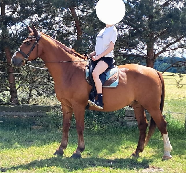 Schweren Herzens suche ich aus persönlichen Gründen ein neues, fürsorgliches Zuhause für meinen SW-Wallach El Castello. Ein guter Platz steht für mich klar im Vordergrund. Er ist 19 Jahre alt, ca. 165 cm groß, von der Rasse Sächs.-Thür. Schweres Warmblut und stammt ab von Elbkapitän x Cartoon. Vom Charakter her ist er ein absoluter Schatz: gutmütig, umgänglich, unkompliziert und sehr verträglich. Er steht aktuell problemlos in einer gemischten Stuten-/Wallachherde. Er ist schmiede- und verladefromm und im täglichen Umgang brav und zuverlässig. Gesundheitlicher Hinweis: Aufgrund von Arthrose im rechten Vorderbein ist er nicht mehr voll belastbar. Er eignet sich für ruhige Ausritte im Gelände sowie für Spaziergänge. Asphaltierte Wege sollten möglichst vermieden bzw. nur eingeschränkt genutzt werden. Haltungswunsch: Derzeit ist er in einer Außenbox mit Paddock untergebracht und hat täglichen Koppelgang. Im Sommer steht er gemeinsam mit der Herde 24/7 auf der Weide. Für seine Zukunft wünsche ich mir eine ähnliche, pferdegerechte Haltung mit ausreichend Bewegung, Sozialkontakt und Ruhe. Ich wünsche mir für ihn Menschen mit Herz, die ihm einen liebevollen Lebensabend ermöglichen. Bei ernsthaftem Interesse und einem passenden Zuhause freue ich mich über eine Nachricht.
