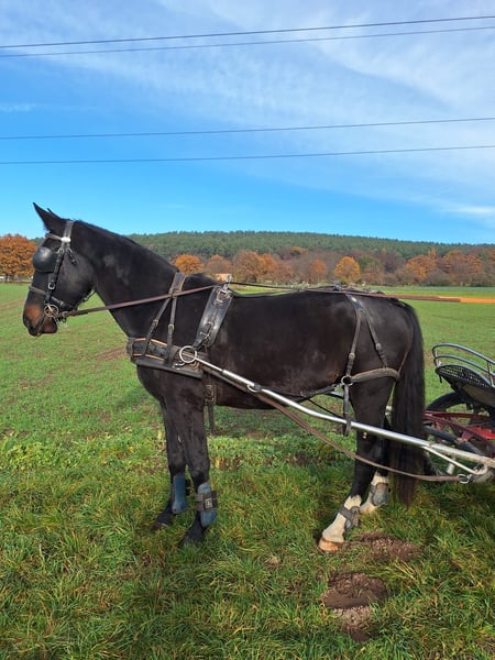 Verkaufen unseren fast 4 jährige Wallach Elmiro.Er ist momentan 1.63 groß, ist ein - und zweispännig gefahren und absolut Verkehrssicher. Ist bei uns seit dem Fohlenalter aufgewachsen, leider passt er nicht zu unseren Gespannen.