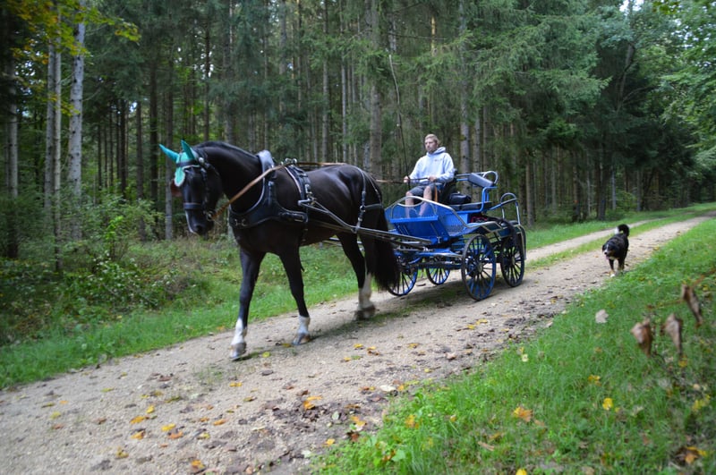 Unser 3,5-jähriger Wallach (Sächs.-Thür. Schwerer Warmblut) ist sehr brav im Umgang und arbeitswillig. Er wird in der Kutsche ein-, zwei und vierspännig gefahren. Unter dem Sattel zeigt er alle drei GGA schwungvoll und bringt Potential für mehr mit sich. Sowohl beim Reiten als auch beim Kutsche Fahren zeigt er sich stehts lernwillig und engagiert. Bei Interesse und/oder weiteren Fragen melden Sie sich gerne unter der Nummer: 01749203145