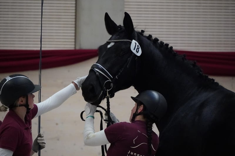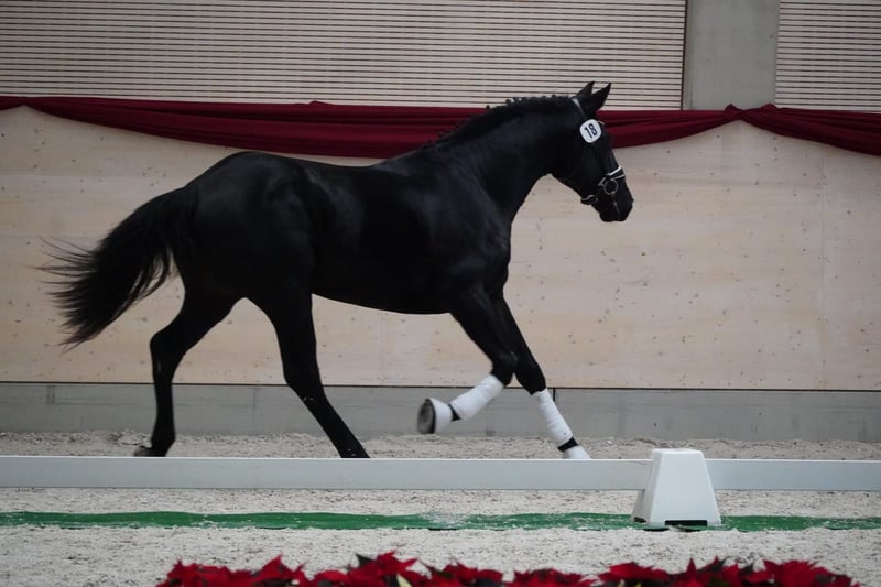 A strong sport-type Warmblood gelding is being offered on behalf of an owner – ideal for the advanced leisure rider or driver! This impressive black stallion was born in 2023. His dam is the state premium mare Zaira, bred to the Thoroughbred Rock of Romance xx for refinement. Romeo stands at 166 cm (16.1 hh), making him the perfect size for a variety of leisure activities. He was presented for the Heavy Warmblood licensing in November. Intelligent, eager to perform, and always striving to do everything correctly, he requires an experienced horseperson who can provide him with confidence and security in handling. He has been lunged during the licensing process and has developed good musculature. He also behaved well with a saddle afterward, so he was tested with rider weight. If you are interested or have further questions, please feel free to contact me. I would be happy to arrange a viewing and a meet-and-greet!