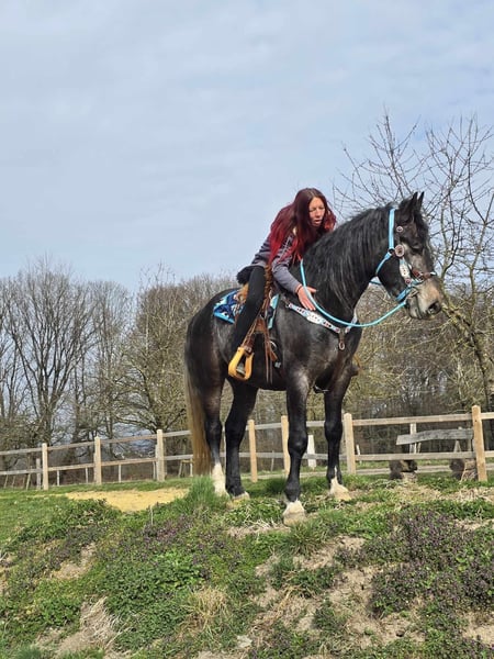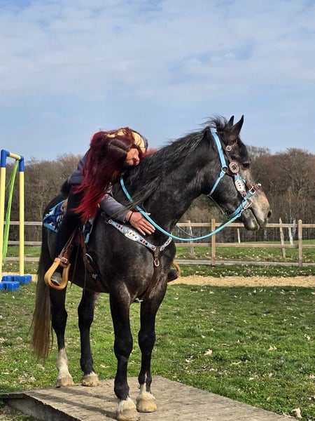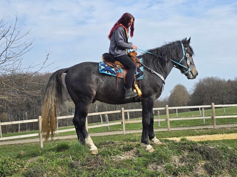 Rappschimmel-Wallach – freundlich, aufmerksam & arbeitswillig Alter: 2022 geboren (ca. 4 Jahre) Stockmaß: ca. 1,60 m Preis:6900 AKU: vorhanden ✨ Beschreibung: Ein hübscher Rappschimmel-Wallach mit sehr angenehmem Charakter. Im täglichen Umgang zeigt er sich freundlich, ruhig und menschenbezogen. Er genießt Aufmerksamkeit, ist verschmust und arbeitet gern mit seinem Menschen zusammen. Der junge Wallach ist bereits angeritten und zeigt sich dabei motiviert und kooperativ. Er lernt schnell, ist aufmerksam und bringt eine gute Einstellung zur Arbeit mit. Für sein Alter präsentiert er sich unkompliziert und möchte seinem Reiter gefallen. Ein junger Begleiter mit Potenzial, der sich weiter ausbilden lässt und gemeinsam mit seinem zukünftigen Besitzer wachsen möchte. 🐎 Perfekt für: Reiterinnen und Reiter, die einen jungen, ehrlichen Wallach suchen und Freude daran haben, ihn weiter auszubilden. Geeignet für Freizeit, weitere Förderung und vielseitige Nutzung. 🩺 Unsere Pferde werden regelmäßig: – entwurmt – vom Schmied betreut – osteopathisch kontrolliert 🛍 Hofladen: Westernsättel, Trensen & Zubehör 🚛 Transport und Equipment auf Wunsch günstig organisierbar Unser Service: ✅ 3 Monate Umtauschrecht ✅ Proberitt: 35 €, jedes weitere Pferd 25 € (beim Kauf am selben Tag angerechnet) ✅ 100 € Sofort-Rabatt bei Abholung/Transport am gleichen Tag ✅ Persönliche & ehrliche Beratung 📞 Anfragen bitte ausschließlich telefonisch: 0171 – 4001968 🕗 Erreichbar täglich von 8–20 Uhr ⚠️ Keine E-Mail oder WhatsApp ⚠️ Alle Angaben ohne Gewähr