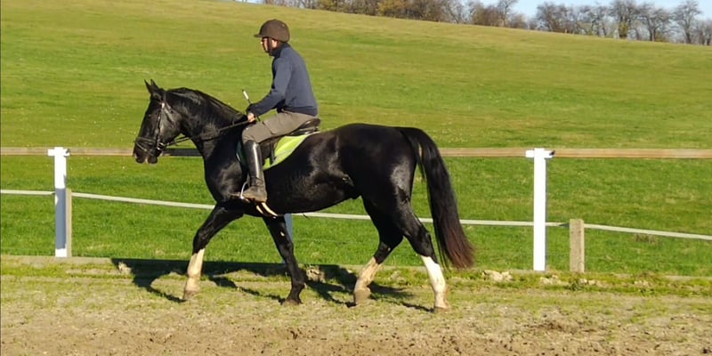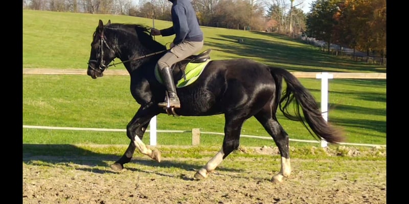 Lord L. Heavy Warmblood gelding, Moritzburger, approximately 4 years old, around 16.1 hh, black A premium SW gelding, just as you imagine a true Moritzburger: with presence, type, correct conformation, good movement, and in a striking black coat. A horse with an excellent temperament. The gelding was born, raised, and trained by us. Well-handled both left and right, in traffic and under saddle. A horse of exceptional quality. Sire is Löwenherz. Dam is Olympia by Eclair-Ottilie. €12,000.00 0171/3132074