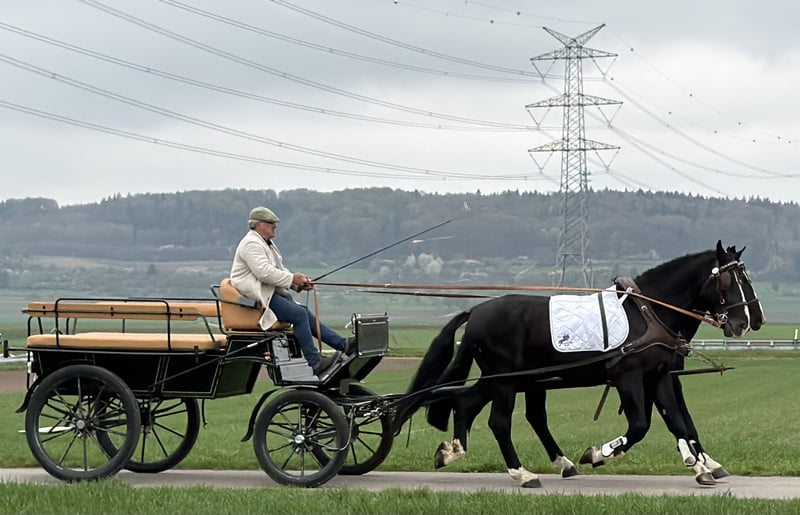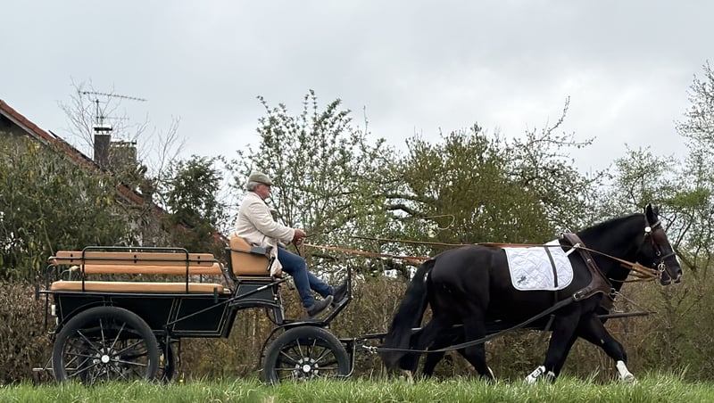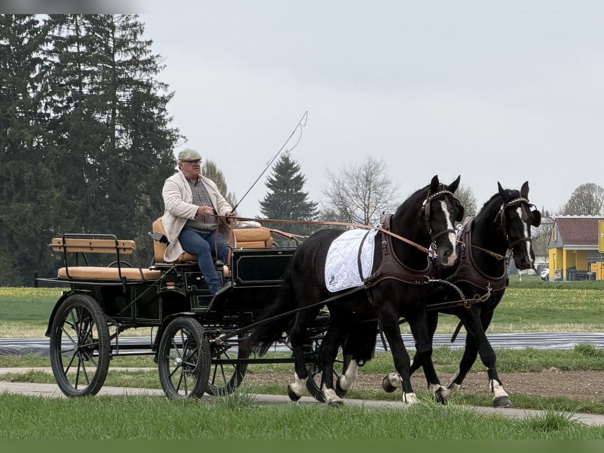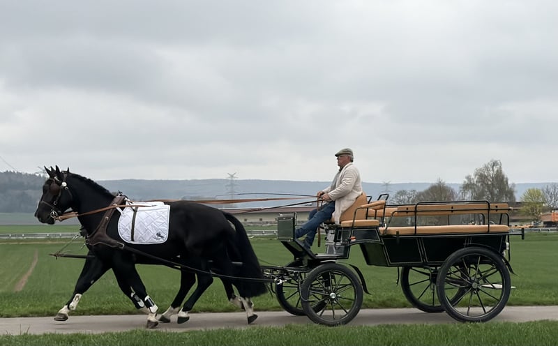 A very harmonious pair of geldings, both of which are road-safe and have been ridden indoors and in the field. They are both very calm and relaxed in handling and focus. The perfect team for carriage drivers, weddings, and anyone looking to have fun.