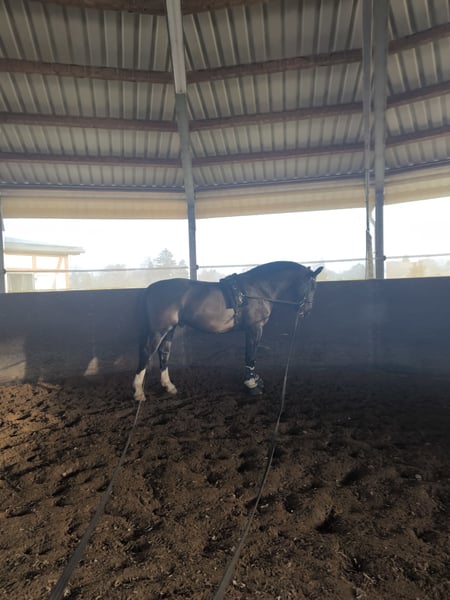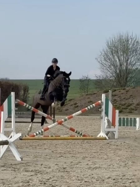 Hallo, ich verkaufe hier meinen 2018 geborenen schweren Warmblutwallach Valentino, auch liebevoll Eselchen genannt. Valentino ist ein Pferd was immer neugierig auf neue Dinge ist und gern Freude an der Arbeit hat. Er benötigt eine konsequente Führung, da ihm sonst schnell, viel Quatsch einfällt. Regelmäßige und abwechslungsreiche Arbeit, wie Dressurarbeit, Springen und auch mal mit dem Hänger irgendwo hinfahren und Ausreiten gehen, gefällt ihm sehr. Er wurde vierjährig angefangen einzufahren, dies wurde aber meinerseits nicht weiter gefördert, ich denke aber das ihm die Arbeit auch viel Freude bereiten würde. Er setzt neu gelernte Dinge schnell um und ist immer gewillt alles richtig zu machen. Er läuft mit einem entsprechenden Reiter solide auf A Niveau und beherrscht fliegende Wechsel. Das Springen macht ihm sehr viel Freude, hier springt er einen E Parcours oder macht auch mal gern Stangengymnastik. In letzter Zeit waren wir selten im Gelände, da wird leider zum Ausreiten immer weiter weg fahren müssen. Ich würde mir für ihn einen Platz wünschen, wo er täglich weiter gefördert wird, viel mit anderen Artgenossen raus kommt und man ihn einfach lieb hat. Ich verkaufe ihn nicht aus der Not heraus, sondern einfach, weil ich nicht mehr die nötige Zeit durch Arbeit und Studium finde und er ein Zuhause verdient hat, wo er täglich betüddelt und gefordert wird. Valentino ist sehr ranghoch und war bis über sein viertes Lebensjahr hinaus Hengst. Bei uns steht er mit einem Kumpelwallach täglich draußen und Nachts in der Box. Stuten oder andere Wallache die nebenan stehen, sind für ihn kein Problem, größeren Herdenkonstellationen überfordern ihn aber. Allesamt ist Valentino ein Pferd mit dem man sehr viel Freude habe kann und der jeden Spaß gern mitmacht. Er wird nicht an Händler oder Schulbetriebe verkauft! Für ein Probereiten berechne ich 20 €, was im Falle eines Kaufs, verrechnet wird.