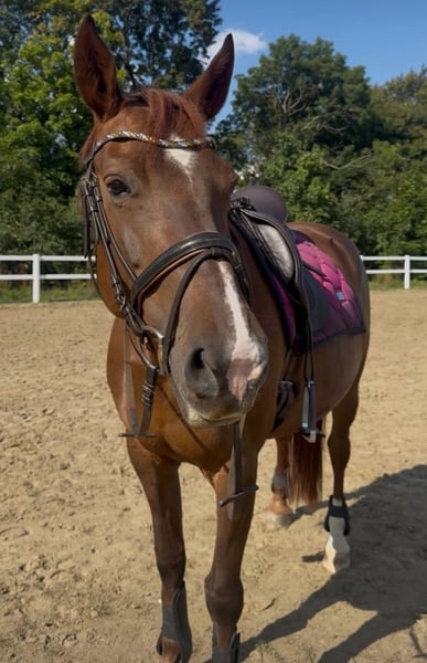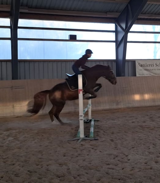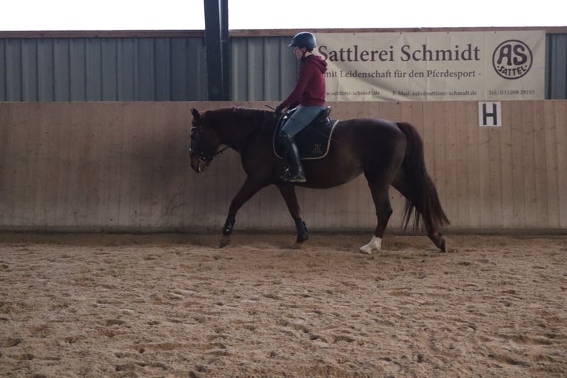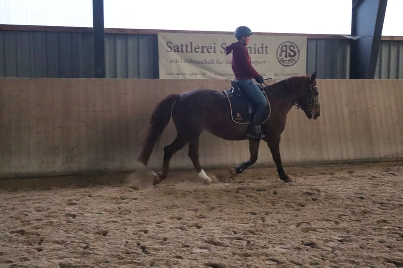 Ich verkaufe eine 9-jährige Fuchsstute im schweren Typ stehend. Sie ist 155 cm groß. Wir haben sie als kindergeeignetes Anfänger-Familienpferd gekauft. Nach 5 gemeinsamen Monaten mussten wir feststellen, dass ihr dieser Job keine Freude macht. Sie hat eine gute Rittigkeit und ist fein am Schenkel. Sie benötigt einen Reiter, der ihr klare Anweisungen und Sicherheit gibt. Dann bekommt man ein Pferd, dass motiviert mitarbeitet, egal ob Dressur-/ oder Springaufgaben. Sie ist mit Stuten verträglich, artig beim Schmied und Tierarzt. Sie wurde regelmäßig geimpft und entwurmt. Im Juli osteopathisch durchgecheckt und im August Zähne frisch gemacht. Videos können bei Interesse geschickt werden. Passendes Zubehör (u.a. Maß-Dressursattel) kann gegen Aufpreis mit erworben werden. Ich wünsche mir für sie eine feste Bezugsperson, die mit ihr zusammen wachsen möchte.