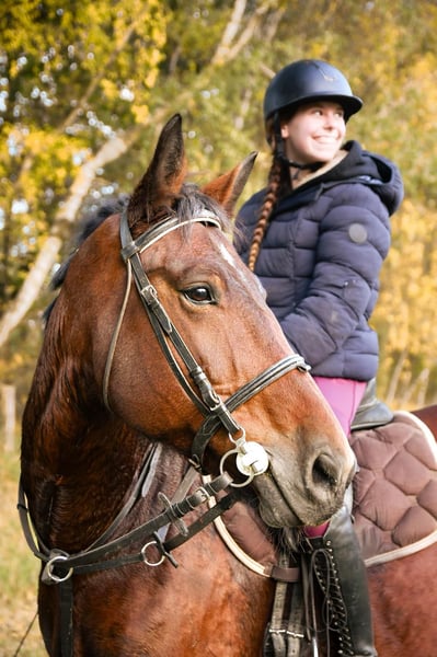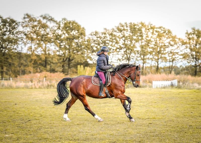 Hella wurde freizeitmäßig geritten und im Fahrsport ein- und zweispännig gefahren. Sie ist im Umgang unkompliziert, du solltest aber schon etwas Erfahrung beim Reiten oder Fahren haben. Sie hatte noch kein Fohlen, war nie krank oder verletzt. Sie hat gute GGA und einen guten Vorwärtsdrang.