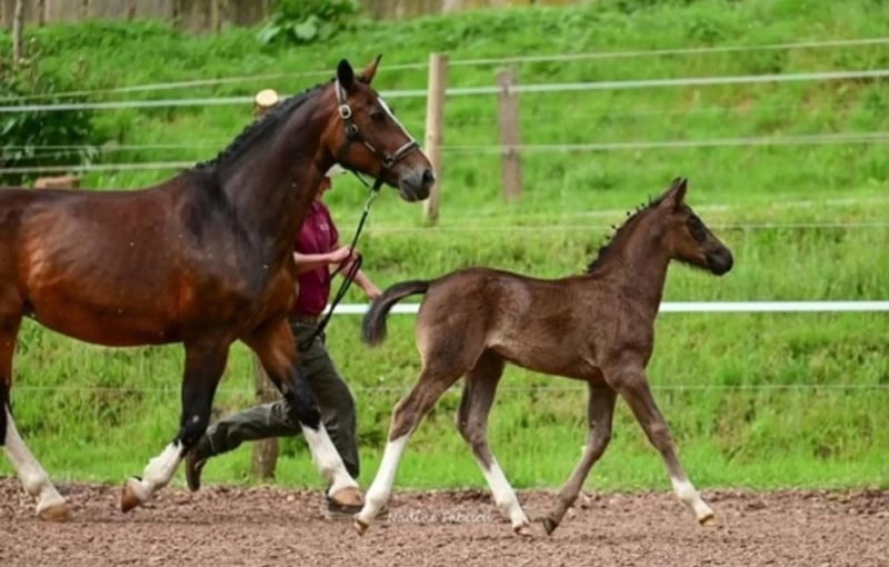 Aus unserer liebevollen Hobbyzucht haben wir uns nun doch entschieden, aufgrund Bestandsreduzierung, unsere im letzten Jahr geborene Schwere Warmblut Stute \"Glanzstück\" abzugeben. Selbstverständlich besitzt sie volles Papier & kennt das Fohlen ABC bereits vollständig. Sie überzeugt mit ihrem einwandfreien & absoluten liebevollen Charakter, was uns den Verkauf wirklich schwer macht. Geboren am 23.04.2025 Rappe Letztes Jahr erhielt sie ihre Fohlenprämie zur Fohlenschau. Züchterrisch sehr interessant, durch ihre alten Linien im Pedigree. Jedoch können wir sie uns auch sehr gut als Damen- & Familien Freizeitreit- & Fahrpferd vorstellen. Akuell: Bild 10 Mutter: Gundula von Dornburg (MV Volontär) (vorletztes Bild) Vater: Veltin (letztes Bild) Aktuelle Bilder gern auf Anfrage! 015146450835 Standort: 37339 Nähe Worbis
