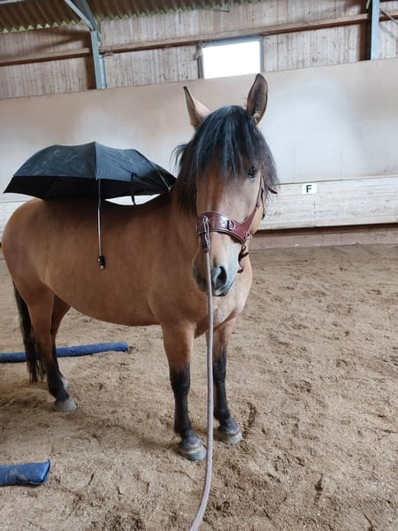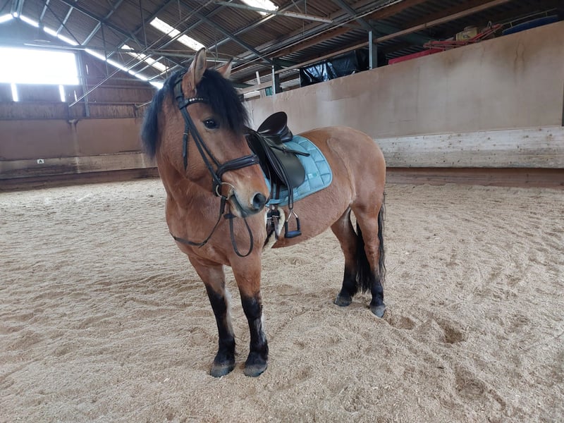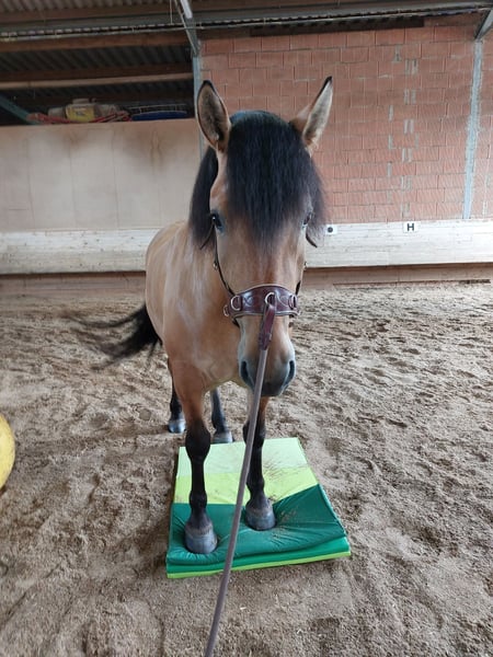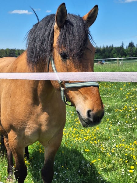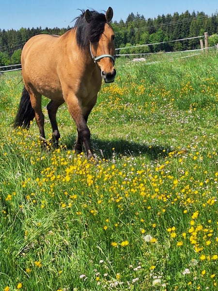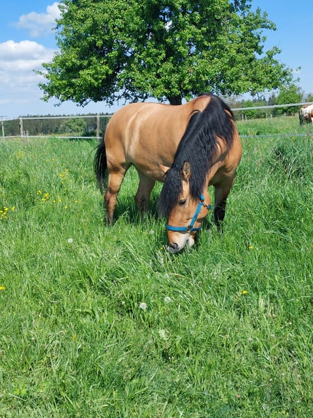 Für Mala suche ich jemand, der Freude an einem charakterstarken Pferd mit großem Lernwillen hat. Für meine Stute suche ich einen erfahrenen, liebevollen Menschen mit bestimmtem, aber ruhigem und feinem Umgang. Mala hat ein Stockmaß von 1,49 m. Sie ist kein Anfängerpferd, da sie dominant ist und gerne ihre Grenzen testet. Wer ihr Sicherheit gibt und seinen Standpunkt souverän und ohne Härte vertreten kann, bekommt ein motiviertes Pferd. Mala ist englisch freizeitmäßig geritten. Sie läuft in allen 3 Gangarten, kennt das Gelände vom Boden aus, mit Reiter allerdings erst wenige Male. Sonstige Eigenschaften: - Kreuzung WB/KB: Mama: Konik, Papa: polnisches Kaltblut - in der Herde Rangmitte - lernt schnell - sehr geduldig - manchmal zickig in Box (nicht bösartig) - Bodenarbeit macht ihr Spaß - idealerweise max. 2 Bezugspersonen Gesundheit: - war bisher nicht krank - regelmäßige Hufschmied-/ Zahnarzttermine - Entwurmung 2 x jährlich Zubehör verkauf ich bei Bedarf gern mit. Bei Fragen kommen Sie gerne auf mich zu.