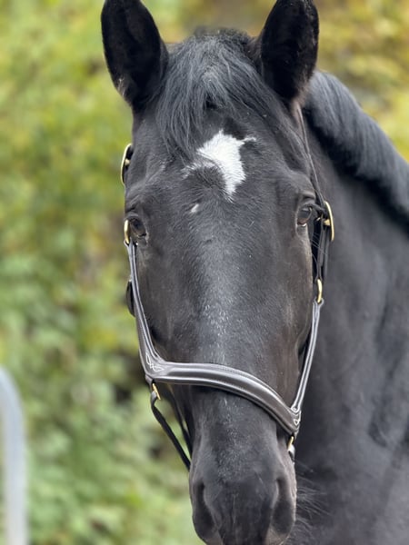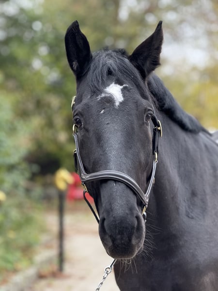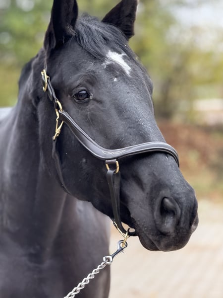 Baba is a lovable leisure partner who already captivates with her friendly and sweet nature at the grooming area. She is well-behaved and incredibly cool under saddle. Baba is very easy to ride even without a bit and exhibits expressive movements, showing skill and enthusiasm for jumping. She responds nicely to dressage riding, completes small jumps under the rider, and is absolutely willing and fearless in the field, whether alone or in a group. With further training, she could also be suitable for competition. She is so relaxed that she would likely be a good candidate for vaulting. She would also enjoy groundwork and small tricks. She is quite curious and playful. Baba is currently turned out with other mares during the day and stabled at night. She is also familiar with turnout in a paddock and open stall management. In handling, she is a gem. She has no issues with bathing, farrier visits, loading, etc. A great opportunity for someone who wants to further shape their future dream horse. Nearly 7-year-old mare, 16.1 hh Clinical health check available. For viewing and trial riding, we kindly charge a fee of 50 euros. This will be deducted from the purchase price if the horse is bought.