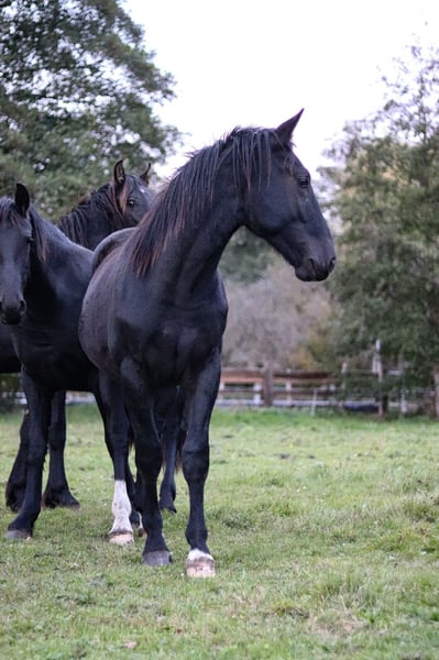 Im Auftrag: Charly ist ein dunkelbrauner Junghengst. Er ist am 24.04.2024 geboren und genießt seit dem Absetzen mit seinen gleichaltrigen Kumpels sein Jungpferdeleben auf Wiesen. Hierbei zeigt er sich sehr unauffällig und ausgeglichen. Er ist neugierig, dabei aber nie aufdringlich und eher fein. Er ist roh, kennt aber das Halfter und führen, die Hufe werden in einem Rythmus von 6-8 Wochen bearbeitet, hierbei zeigt er keinerlei Unarten. Er misst aktuell 1,52 m, da seine Eltern 1,60 m und 1,65 m groß sind, wird ein ähnliches Endstockmaß zu erwarten sein. Ich kann ihn mir sehr gut als entspannten Freizeitpartner mit dem man viel Spaß haben wird, vorstellen. Er kann gerne nach Absprache kastriert werden. Bisher ist er kerngesund, zeigt keinerlei Unarten und bringt alles mit, was ein 1,5 Jähriger mitbringen sollte. Seine Mama steht nur 4 km entfernt im Nachbardorf, sie ist gefahren und geritten und hatte einige Nachkommen. Sie kann ebenfalls besichtigt werden, aktuell läuft sie ausschließlich vor der Kutsche und ist sehr ausgeglichen. Du hast Fragen oder möchtest Charly kennenlernen? Dann melde dich doch gerne.
