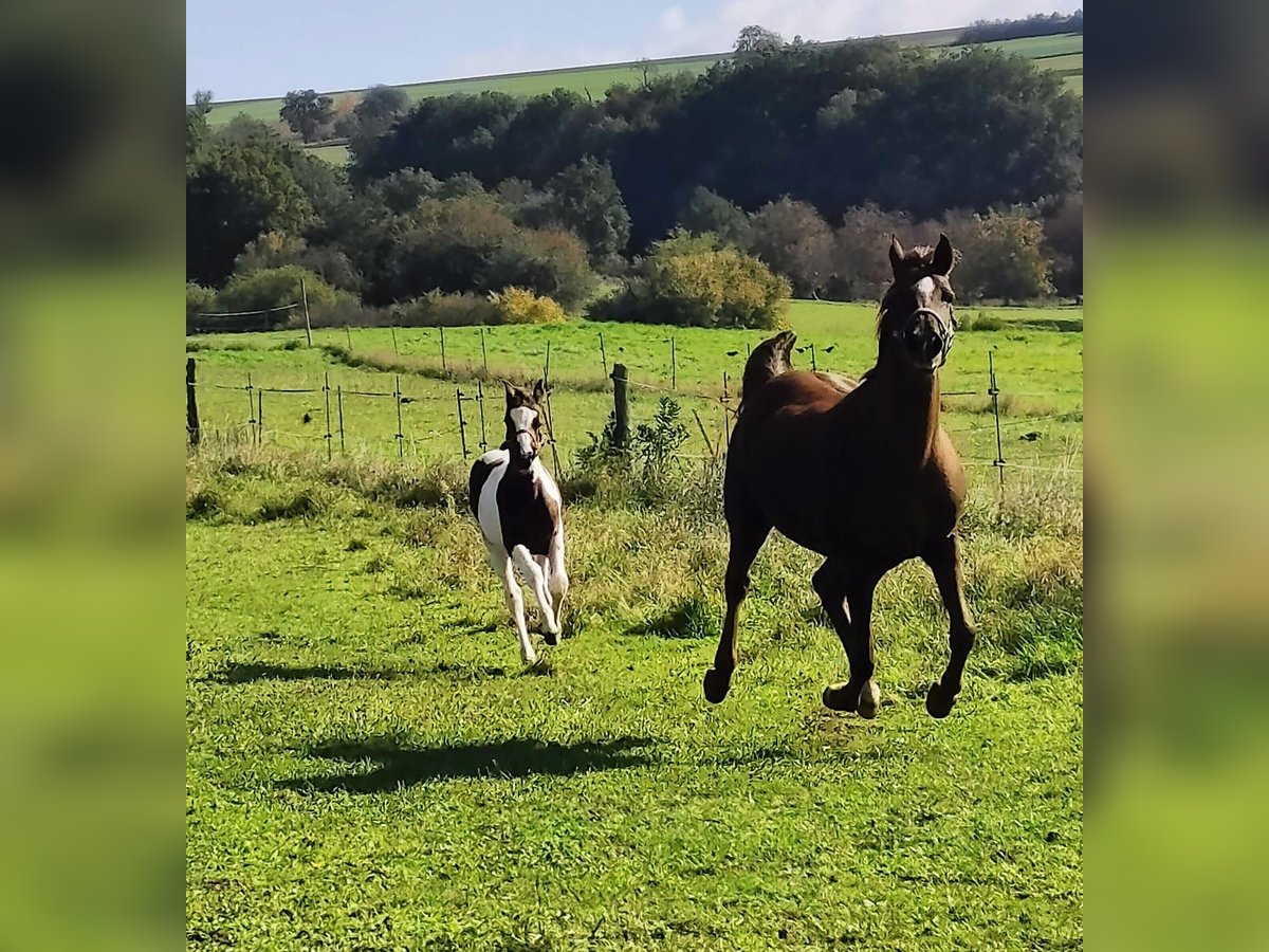 Vielversprechendes, typstarkes Stutfohlen in bunter Jacke – von Spirit of Colour aus unserer Verbandsprämienstute PC Asallah. Spirit’s Alisha, ist Prämienfohlen beim ZSAA - eingetragen als Deutsches Edel-Blut Pferd. Geschätztes Endmaß: ca. 164 cm Ihr Vater: Spirit of Colour vererbt konstant besten Charakter, Rittigkeit und Nervenstärke. Im Sport erfolgreich Dressur - Springen und Gelände (A-L) Die Mutter PC Asallah: Sie bringt arabische Leistungsbereitschaft, Härte und Ausdauer mit und stammt aus einer sportlichen, gerittenen und bewährten Zuchtlinie. Alisha selbst zeigt sich kompakt, wendig, intelligent und schnell – mit natürlicher Veranlagung interessant für Working Equitation, später sicher vielseitig einsetzbar. Sie ist außergewöhnlich intelligent, lernt rasch und ist dem Menschen sehr zugewandt. Sie ist regelmäßig entwurmt, Geimpft kennt den Hufschmied und beherrscht selbstverständlich das Fohlen-ABC. Im täglichen Umgang zeigt sie sich neugierig und mutig. Aufgewachsen in einer gemischten Herde, ist sie bereits bestens sozialisiert. Wegen kleinem Schönheitsfehler unter Wert zu verkaufen. Ab sofort darf sie in ihr neues Zuhause umziehen. Bei ernsthaftem Interesse freue ich mich über eine Nachricht.