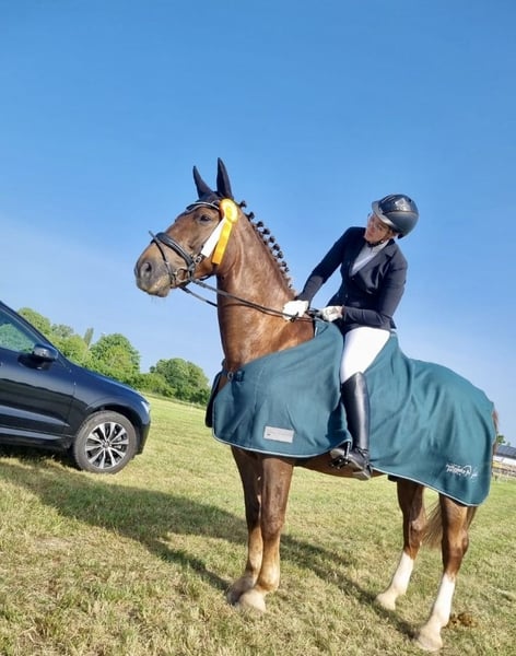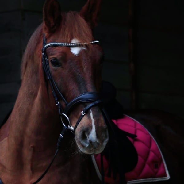 Voordat we naar de details gaan, eerst het volgende: Dit paard is niet diep getraumatiseerd of misbegrepen en wil niet gered worden of een ‘project’ zijn. Raven is Engels gereden, goed opgeleid en heeft een solide basis. Hij heeft een eigenaar nodig die consequent in de omgang is en duidelijke grenzen kan stellen. Raven is een zwaar warmbloed uit Saksen-Thüringen, gefokt voor dressuur, en verrast met een soepel bewegingsbeeld voor zijn kaliber. Hij beschikt over drie goede basisgangen, waarbij vooral de stap eruit springt, met een bereidwilligheid tot een sterke stap. Dit jaar heeft Raven tijdens zijn eerste concoursseizoen in drie L-klasse wedstrijden drie plaatsen behaald en is succesvol in de klasse A**. Op de ene dag vooraan in de ere-klasse in goud, op een andere dag in zijn eigen ere-klasse, om onduidelijke redenen, oncontroleerbaar en onvoorspelbaar. Elke externe trainer was enthousiast, want als hij kan schitteren, dan doet hij dat ook. Maar als hij discussie wil, dan discussieert hij ook. En dan regelt hij alles met kracht en door de muur te rammen. Hij gedraagt zich dominant tegenover mensen en ook tegenover andere paarden onder het zadel. In deze situaties is hij voor mij niet handelbaar. Grenzen worden regelmatig opnieuw getest en moeten consequent worden vastgesteld. Van 15 keer rijden heb je 13 keer een geweldig rijgevoel en 2 keer ben je blij dat je je leven niet hebt verloren en ongedeerd uit zo’n situatie bent gekomen. Het is nooit duidelijk of vandaag dag X of Y is. Daarom zal ik geen proefritten toestaan, omdat ik geen aansprakelijkheid neem. Raven heeft al in een kudde gestaan, wat goed werkte. Momenteel wordt hij vooraan beslagen. Vervoer door dierenarts en hoefsmid geregeld. Alleen geschikt voor ervaren handen, niets voor kinderen. Hij lost alles wat hem niet bevalt altijd met kracht op. Voor mij als 1,65 m grote, alleenstaande moeder is dat niet langer te doen. Voor informatie over de gezondheidstoestand of vragen over de ruiterlijkheid, ben ik graag bereikbaar, maar ik sluit alles wat betreft het rijden en de omgang uitdrukkelijk uit in het contract. Plaats vóór prijs!!! Want ondanks alles ligt dit paard mij zeer na aan het hart.