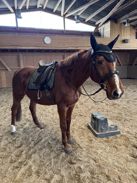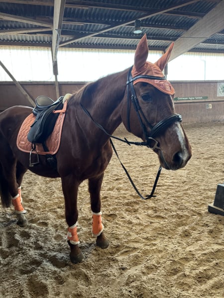 Schweren Herzens suche ich für meine 24-jährige Sachsen-Anhaltiner Fuchsstute Ferlina einen passenden Endplatz. Leider kann ich sie mir aus finanziellen Schicksalsschlägen halten/leisten. Ferlina ist eine absolut liebenswerte und menschenbezogene Stute, die ihren Menschen schnell ins Herz schließt. Sie ist im Umgang brav, kennt Offenstallhaltung und kommt mit dem Alltag gut zurecht. Aufgrund ihres Alters zeigt sie erste Anzeichen von Arthrose und ist zudem Headshakerin. Daher wird sie nicht als Reitpferd für den Sport abgegeben, sondern bevorzugt als Beistellpferd, für leichte Beschäftigung oder als Herzenspferd. Sie ist eher schwerfutterig und benötigt eine angepasste Fütterung sowie ein aufmerksames Auge. Ihre Hufe sind ebenfalls etwas empfindlich (sie ist sehr flach gestellt), was entsprechend berücksichtigt werden sollte. Ich wünsche mir für Ferlina einen liebevollen Platz, an dem sie ihren Lebensabend genießen darf – mit Menschen, die Zeit, Geduld und Herz für ein besonderes Pferd mitbringen. 📍 Platz vor Preis 📍 Nur in beste Hände 📍 Zubehör bekommt sie mit dazu (ihren Sattel + Trense kann für 500€ dazu erworben werden.) Bei ernsthaftem Interesse freue ich mich über eine Nachricht und erzähle gern mehr über sie.