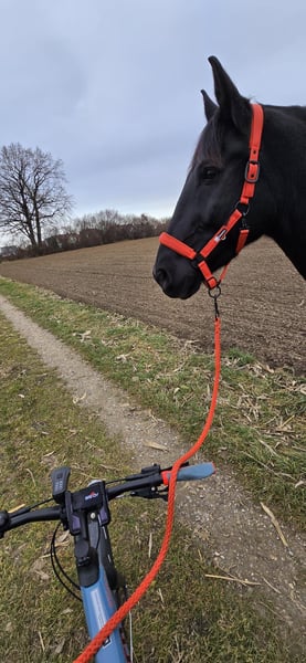 Miro Schlesisches WB – 165cm Stkm – Geboren Juni 2012 Miro ist ein sensibles, lernwilliges, verschmustes und liebes Charakterpferd. Wir sind knapp 6 Jahre zusammen einen spannenden und lehrreichen Weg gegangen aber nun ist es Zeit sich zu trennen. Miro kam mit ca 8 Jahren als grob angerittenes und dann nur gefahrenes Kutschpferd zu uns. Das, was uns damals schon die Hoffnung gegeben hat das er auch ein tolles Reitpferd werden kann, ist seine menschenbezogene und aufgeschlossene Art. Mittlerweile kennt er Reiten in der Halle in allen drei Grundgangarten, Seitwärts, Travers, Schulterherein. (Reiten nach Grundsätzen der Legerete, Klassischen Reitkunst – „hoher“ Kopf) Ausreiten allein und in der Gruppe Schlitten und Egge ziehen Anhängerfahren Trailparcours Wanderritt Als Handpferd neben dem Fahrrad laufen (S+T) Podest und Wippe ( kann mit verkauft werden) Sprünge bis 50cm Spazieren am Halsring Er wurde von mir ausnahmslos gebisslos geritten / bewegt / gefahren. Er reagiert fein mit wenig Einwirkung. Am liebsten aber „arbeitet“ er frei mit dem Menschen und darf seine eigenen Ideen einbringen. Er reagiert sehr gut auf Stimme und wurde von mir mit viel Körpersprache ausgebildet. Er kennt es für alles positives oder „negatives“ Stimmfeedback zu erhalten. Meiner Einschätzung und Erfahrung nach ist er KEIN Kinderpferd. Als Barhufbearbeiterin habe ich seine Hufe immer in einem funktionalen Zustand gehalten. Mittlerweile „trimmt“ sich die Kapsel von selbst sehr gut. Leichte Schiefenkorrekturen hinten müssen weiter vorgenommen werden. Gerne gebe ich dazu eine „Anleitung“ mit auf den Weg. Keine Rehe, Abszesse, Fäule o.ä. Bei längeren Ausritten oder sehr steinigen Wegen haben wir Ihm Hufschuhe angezogen. (werden mitgegeben) Er wurde mehrmals im Jahr Osteopathisch behandelt / unterstützt. Seine Schwächen sind: Das rechte hintere Bein wurde durch das lange einseitige Einspannen (immer rechts außen nach innen gebogen) beim Kutschefahren nicht vernünftig “ausgebildet". Er läuft daher „auf der Hinterachse“ nicht 100% klar z.b. bei nasskaltem Wetter o.ä. Manchmal „Vergisst“ er das Bein auch einfach ;) Ist aber keine Einschränkung für Reiten, Fahren etc, man muss nur etwas Rücksicht darauf nehmen bzw sieht an dem Bein wie sein allgemeiner (energetischer) Zustand gerade ist. Durch die diagonale Schiefe ist sein Huf VL etwas verkleinert / schmäler Da er ein sensibler Typ ist kann er mit Stress nicht sehr gut umgehen und wird dann unruhig (hauptsächlich guckig oder leichte Magenempfindlichkeit). Zahnfleischfisteln - bisher nur am Eckzahn unten links ( ½ Jährlicher Zahnarzt nötig) Er neigt NICHT zum Koliken (hatte in den 5 Jahren bei uns keine einzige) – insgesamt robuste Konstitution, wurde nur bei Dauerregen unter 10°C eingedeckt. Er ist kein Durchgänger oder „Renner“. Er bleibt bei unklaren Situationen immer stehen und kuckt erstmal wie angewurzelt. In sehr ungünstigen Situationen wie, kompletter Überforderung / unpassender drückender Sattel im hinteren Bereich / zu schwerem Reiter kann er mit Buckeln reagieren. War anfangs ein Problem aber seit einigen Jahren stabil gut. >>> Passender 18“ Dressursattel sollte mit übernommen werden. Miro ist absolut sozialkompetent und ordnete sich bisher immer im „Mittelfeld“ ein. Er ist tolerant gegenüber sozial schwächeren, zickigen Stuten und allen anderen die freundlich zu ihm sind. Wenn Ihm jemand unsympathisch ist versucht er sich demjenigen zu entziehen. Hat noch nie gebissen oder böse getreten. Er möchte immer „Everybody´s Darling“ sein, Mensch wie Tier gegenüber. Springt 100%ig NICHT auf ! Er stand bisher immer tagsüber in gemischter Herdenhaltung + Nachts in der Box . Ich könnte mir aber auch vorstellen das er in einem Offenstall klarkommen würde mit einer kleinen Herde. In reine Boxenhaltung / Einzelhaltung mit stundenweiser Koppel verkaufe ich Ihn nicht ! Ich suche jemanden für Ihn, der Ihn weiter in der Freiarbeit sein Können zeigen lässt, Geduld mit Ihm hat wenn er mal wieder unsicher ist, Ihn nicht in eine Form pressen möchte sondern liebevoll fördert und auch mal ein Nein akzeptiert. Er wird alles geben was er kann. Da Ihn mein „Action/PowerProgramm“ auf Dauer gestresst hat suche ich einen NICHT Abenteuerlustigen neuen Menschen für Ihn. Routinen und „Gewohntes“ sind ihm sehr wichtig! Trotz seines kräftigeren Körperbaus sollte der Reiter nicht mehr als 75-80kg wiegen. Seine Vor- und Krankengeschichte seit seiner Geburt ist transparent und bekannt. Platz vor Preis für diesen tollen Allrounder :) Idealerweise möchten meine Mutter und ich sein neues Zuhause besichtigen und weiter freundschaftlichen Kontakt pflegen und bei auftauchenden Fragen unterstützen – wenn gewünscht. Platzvergabe innerhalb von Bayern bevorzugt. Absolut kein Notverkauf! Anrufe unter der Woche bitte erst ab 17:00 01515 9207098 Jasmin Findorff