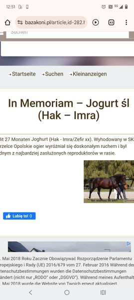 Royal ist ein ganz lieber und freundlicher, junger Silberschimmel Wallach. Er läuft einem hinterher wie ein Hund und kommt angelaufen, wenn man ihn ruft. Er ist Angeritten und war im Polen schon ein paar mal an der Kutsche. Dadurch ist er total unerschrocken und das erste Mal Reiten war gar kein Problem. Er hat eine gute Abstammung, reiner Schlesier (Slaska) Seine Eltern und sein Großvater habe ich in den Fotos beigefügt. Sein Endmaß wird zwischen 165 und 168 cm liegen. Er geht barhuf und ist gesund sowie verträglich mit anderen Pferden. Royal fährt problemlos Anhänger und ist brav beim Schmied. Er ist ein echter Kumpel für jemanden, der natürlich ein bisschen Erfahrung mit jungen Pferden mitbringt. Er kann gegen Aufpreis gebracht werden. Eine Besichtigung sowie Probereiten oder Vorreiten ist jederzeit möglich. Videos schicke ich gern per WhatsApp Reitvideos folgen.