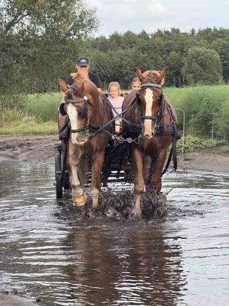 For Sale A pair of harness geldings of chestnut color Suitable for pair driving, single driving, and riding Very well accustomed to urban traffic, continuous wagon work at rallies and hunts, Calm and gentle in behavior Born and raised with us from foals Full siblings Father: Baron Hot-iron shod during the season Current height approximately 16.1 hh Contact only by phone No WhatsApp messages