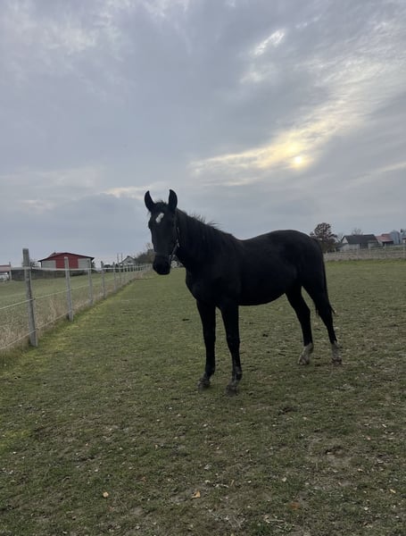 Frimella, eine Schlesische Warmblutstute, Falbfarbe, im Alter von 1,5 Jahren – geboren im April 2024. Das Pferd ist gesund, frei von Mängeln, mit korrekter Konstitution und ruhigem Temperament. Es stammt aus einer guten Linie – Vater Belweder (Lego-Belmira), Mutter Fallada (Likon-Felicja). Regelmäßig entwurmt, geimpft und gepflegt. Das Pferd ist untrainiert und bereit für weitere Ausbildung und Arbeit.