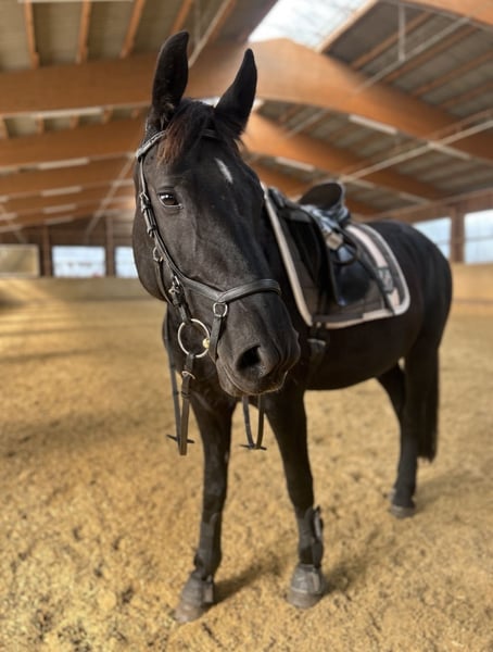 Wir verkaufen schweren Herzens unsere Schlesier x Polnisches Halbblut Stute "Hollywood" von dem Schlesier Hengst "Ego". Sie ist 2019 geboren und hat einen Stockmaß von ca. 155cm. Bereits in ihrem jungen Alter überzeugt sie mit einem coolen, braven und entspannten Wesen. 5-Jährig haben wir sie im Herbst 2024 im Gelände angeritten, danach in die Winterpause geschickt und seit Frühjahr 2025 weiter angeritten. Seit Juli wird sie regelmäßig gearbeitet. Holly ist solide angeritten, beherrscht die drei GGA. Ebenso wurden schon Stangen, Cavalettis und kleine Sprünge in die Dressurarbeit eingebaut. Reitvideos vorhanden. Holly kennt Offenstall- und Pensionsstallhaltung. Sie fährt Transporter und Hänger (unproblematisch beim Verladen). Sie geht alleine und in der Gruppe ins Gelände, ist dabei unter sicheren Reiter:innen (es handelt sich immer noch um ein Jungpferd!) unerschrocken und geht gern voraus. Sie wurde neben dem Gelände in der Halle, Longierhalle, um die Galoppbahn oder auf dem Reitplatz geritten oder gearbeitet. Sie hat Spaß an Longe, Doppellonge, Freispringen, Freiarbeit, Handarbeit, etc. Sie lernt unglaublich schnell und gern. Sie kennt Schenkelweichen, Schulterherein, Übertreten, Ansätze vom Travers, … . Spielerisch hat sie auch Anfänge von halben Tritten angeboten. Sie kennt Hunde, Trecker, etc. Sie kennt es auch gebisslos, mit Reitpad oder komplett ohne Sattel geritten zu werden. Holly wurde ebenfalls schon probeweise von Erwachsenen Anfängerinnen sowie Fortgeschrittenen „Kindern“ (12-18 Jahre) an der Longe und frei geritten. Sie ist sowohl beim Anreiten, als auch in der weiteren Ausbildung brav und unproblematisch gewesen (Videos natürlich vorhanden). Kein Steigen, Bocken oder Durchgehen. Solange die Reiter:innen locker draufsitzen läuft sie schön, wenn jemand klemmt, klemmt sie auch. Unter sicheren und erfahrenen Reiter:innen läuft sie wie ein Uhrwerk, wovon Sie sich beim Vorreiten selbst überzeugen können. Wir können sie uns aufgrund ihres Gemüts als ideales Freizeitpferd (Ausreit-, Kinder- oder Familienpferd) vorstellen, wenn sie an ihre zukünftige Aufgabe mit Sinn und Verstand herangeführt wird. Es handelt sich immer noch um ein Jungpferd, welches weiterausgebildet werden muss. Auch als Kutschpferd oder im Turniersport der unteren Klassen könnte sie glänzen, sie besitzt einen tollen Trab und eine angenehme Galoppade. Sie wird regelmäßig geimpft, entwurmt und barhuf vom Schmied bearbeitet. Sie war seit ihrem 2ten Lebensjahr in unserem Besitz nicht krank, keine Kolik, keine Rehe. Sie hat sich mal eine Verletzung am Hinterbein zugezogen bei der sie NICHT lahm war. Der komplette Behandlungsverlauf liegt vor, aus dem sich ebenfalls ergibt, dass sie nicht lahm war. Diese tolle Stute wird unter Wert verkauft, da sie leider auf beiden Hinterbeinen (links etwas mehr, rechts weniger) seit Geburt an ein Lymphproblem hat. Sie ist dadurch nie lahm gewesen, deshalb haben wir keine speziellen Behandlungsmöglichkeiten ausprobiert. Die Hinterbeine laufen bei mangelnder Bewegung an und schwellen bei Bewegung wieder ab. Wir benutzen nun in Absprache mit dem TA Kompressionsstrümpfe, die helfen, wenn sie sich nicht genügend selbst bewegt. Im Offenstall waren die Hinterbeine stets dünn. Im Pensionsstall ist es deutlicher geworden, da der Anreiz sich auf dem Paddock frei zu bewegen fehlt, wenn sie die ganze Zeit am Heu steht. Wir empfehlen daher aktive Offenstallhaltung oder eine Pensionsstallhaltung mit viel Bewegung und / oder täglicher Arbeit. Sie wird nicht an Pferdehändler abgegeben, am liebsten in private Hände oder eine kleine, liebevolle Reitschule. Wie dem langen Text zu entnehmen ist haben wir Holly sehr ins Herz geschlossen, kennen sie in- und auswendig, versorgen unsere Pferde täglich (mehrmals) selbst und haben ihr einen liebevollen (und nicht zu schnellen) Start ins Reitpferdeleben geboten und hoffen auf ein liebevolles Zuhause (am besten 5 Sterne :-)) damit der Abschied nicht allzu schwer fällt. Preis absolut verhandelbar, Platz vor Preis