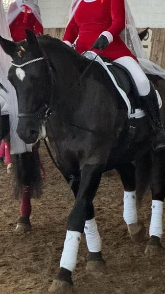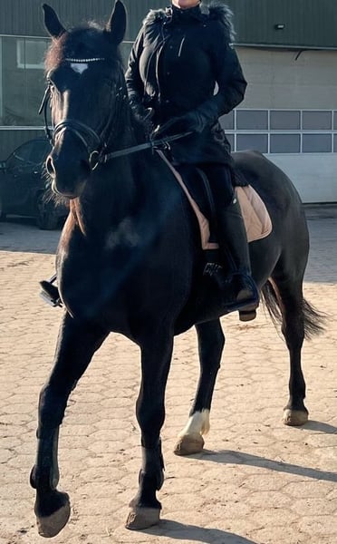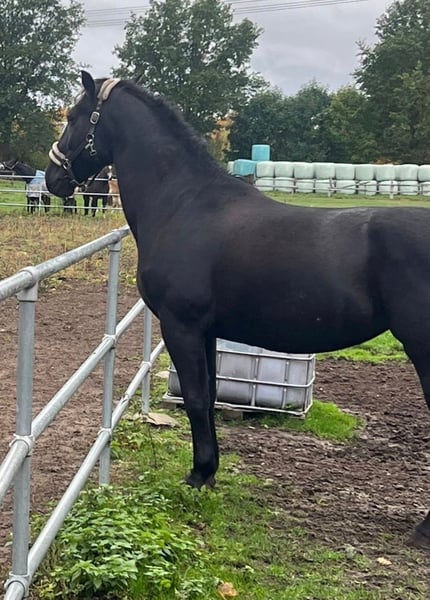 Umständehalber suchen wir schweren Herzens für unsere 04/2020 geborene, liebevolle und wunderschöne Schlesier Rappstute (Staatsprämienstute) ein neues Zuhause, in dem sie weiterhin geschätzt und gefördert wird. Sie ist ein echtes Herzenspferd, hat ein ganz tolles Wesen und ist sehr menschenbezogen. Sie genießt jede Art von Aufmerksamkeit und ist total anhänglich. Von der Koppel oder vom Paddock kommt sie ihrem Menschen meistens freudig entgegengelaufen. Sie ist herdenverträglich und steht tagsüber gut integriert in einer gemischten Herde je nach Jahreszeit auf der Koppel oder auf dem Paddock. Sie hat ein Stockmaß von ca. 1,63 m, ist rassetypisch kräftig gebaut, sehr robust und läuft Barhuf (sehr gute Hufsubstanz). Sie hat viel Freude an ausgedehnten Ausritten im Gelände und an Bodenarbeit. An der Longe hört sie super auf Stimmkommandos. Dressurmäßig wurde sie noch nicht weit gefördert, bringt aber Potenzial für weitere Ausbildung mit. Sie kennt Stangen- und Cavalettiarbeit, ist nervenstark, ehrlich und nicht schreckhaft. Im Dezember 2025 ist sie problemlos in unserer Weihnachtsquadrille mitgelaufen. Sie ist nicht triebig aber auch keine Schlaftablette. Am Anfang auf dem Video zu sehen ist eine 11jährige Reitanfängerin, die sie mit Ausbindern problemlos reitet. Trotzdem ist sie schon aufgrund ihres jungen Alters kein reines Anfängerpferd. Sie testet hin und wieder die Grenzen aus, ist dabei aber niemals bösartig. Sie braucht einen Menschen, der ihr noch etwas Sicherheit gibt und sie mit konsequenter, fairer und liebevoller Hand führt. Sie ist wirklich ein echter Kumpel und geht mit einem durch dick und dünn :-) Wir wünschen uns für sie ein Fünf-Sterne-Zuhause mit einer festen Bezugsperson, die Freude an ihrer weiteren Ausbildung hat und zu ihren Eigenschaften passt. Sie war bei uns immer gesund und benimmt sich super lieb beim Schmied, Impfen etc. Es handelt sich ausdrücklich nicht um einen Notverkauf. Wir geben sie nur ab, wenn alles passt. Platz vor Preis! Bei ernsthaftem Interesse freuen wir uns über eine Nachricht.