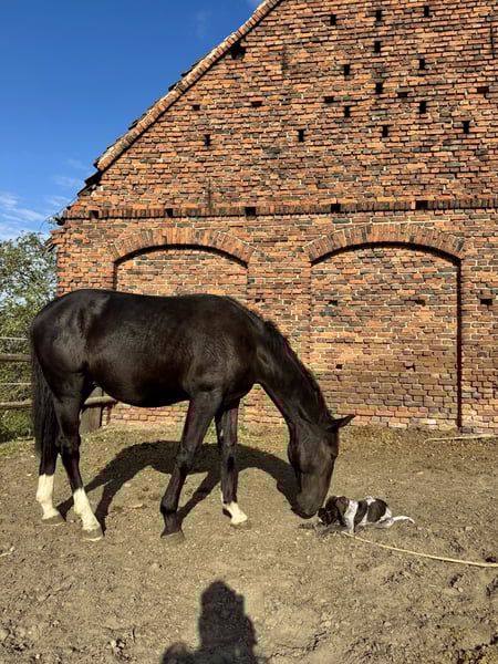 A one-and-a-half-year-old Silesian stallion, born on June 1, 2024. He has a passport with complete Silesian pedigree. Very friendly and curious. Always approaches people in the paddock. Daily paddock time. Beautiful coat – three socks and a star on his forehead. Unique Roman nose. Regularly trimmed. Current height: 156 cm. He will be a large horse. I can send videos via WhatsApp. Father is in the second-to-last photo, mother is in the last photo. Father’s height: 165 cm. Mother’s height: 168 cm.